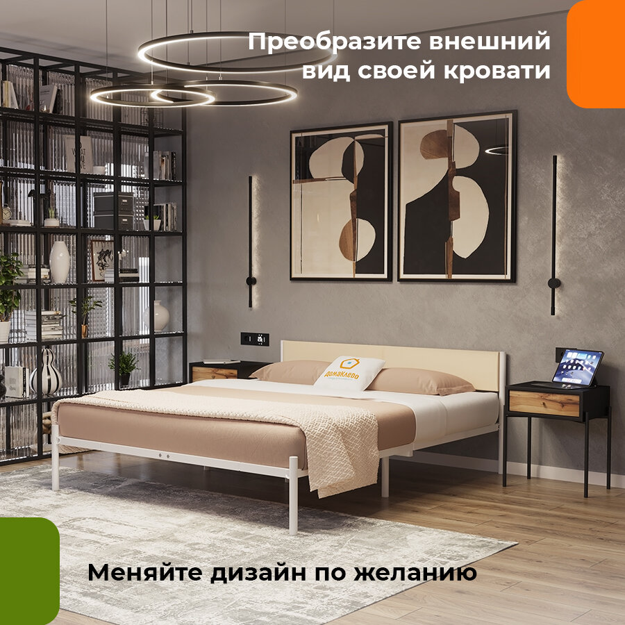 Купить ДомаКлёво, универсальное мягкое изголовье для металлической кровати шириной 160, кожзам бежевый Манго