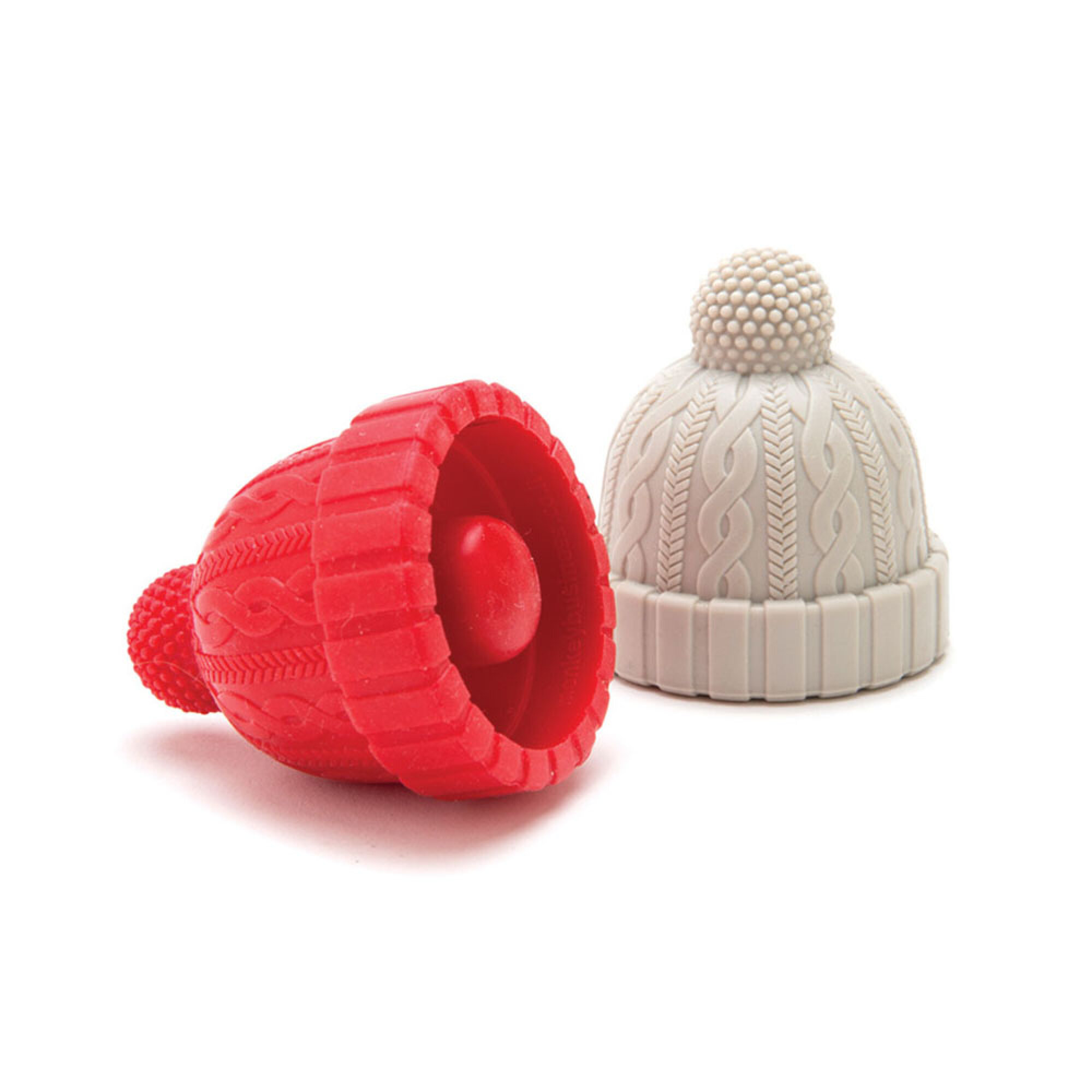Пробка для бутылок "Вязаная шапочка" 5,5х5 см, силикон, красная/серая, 2шт