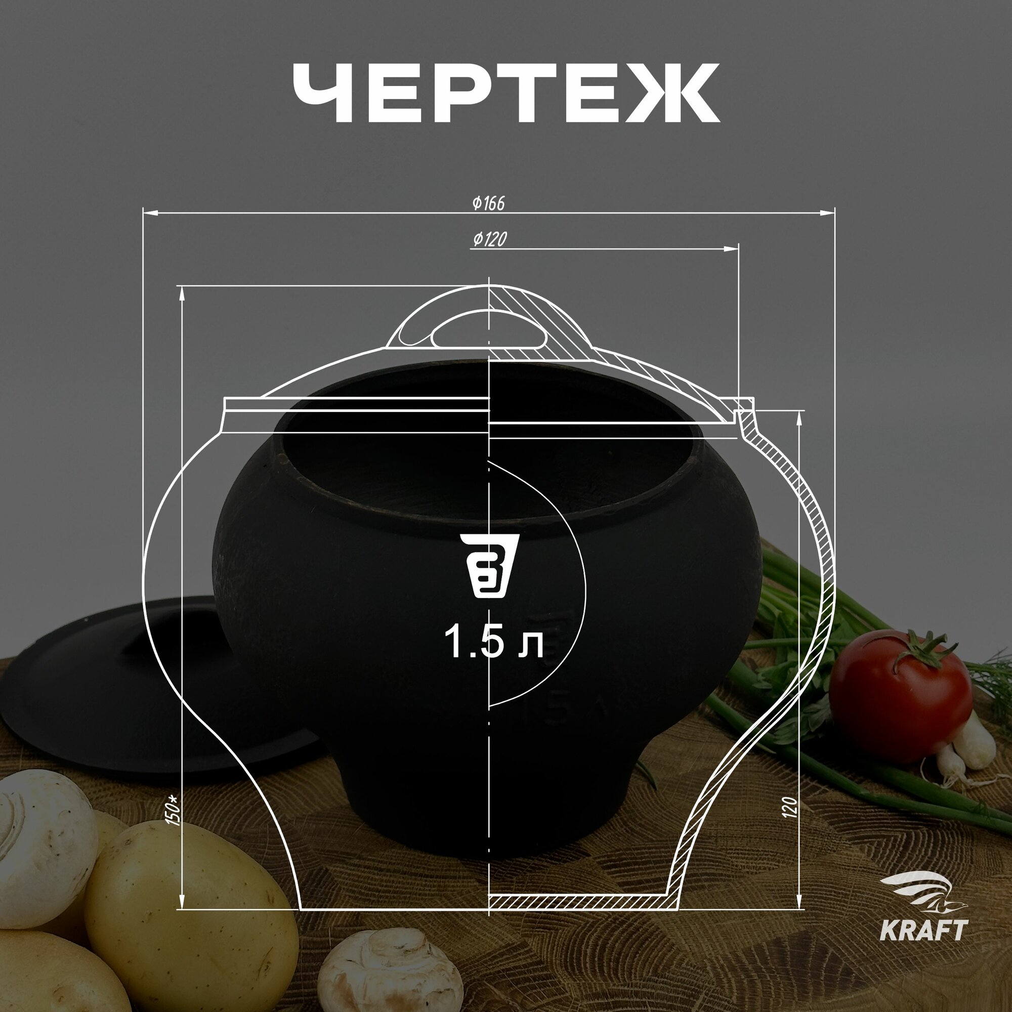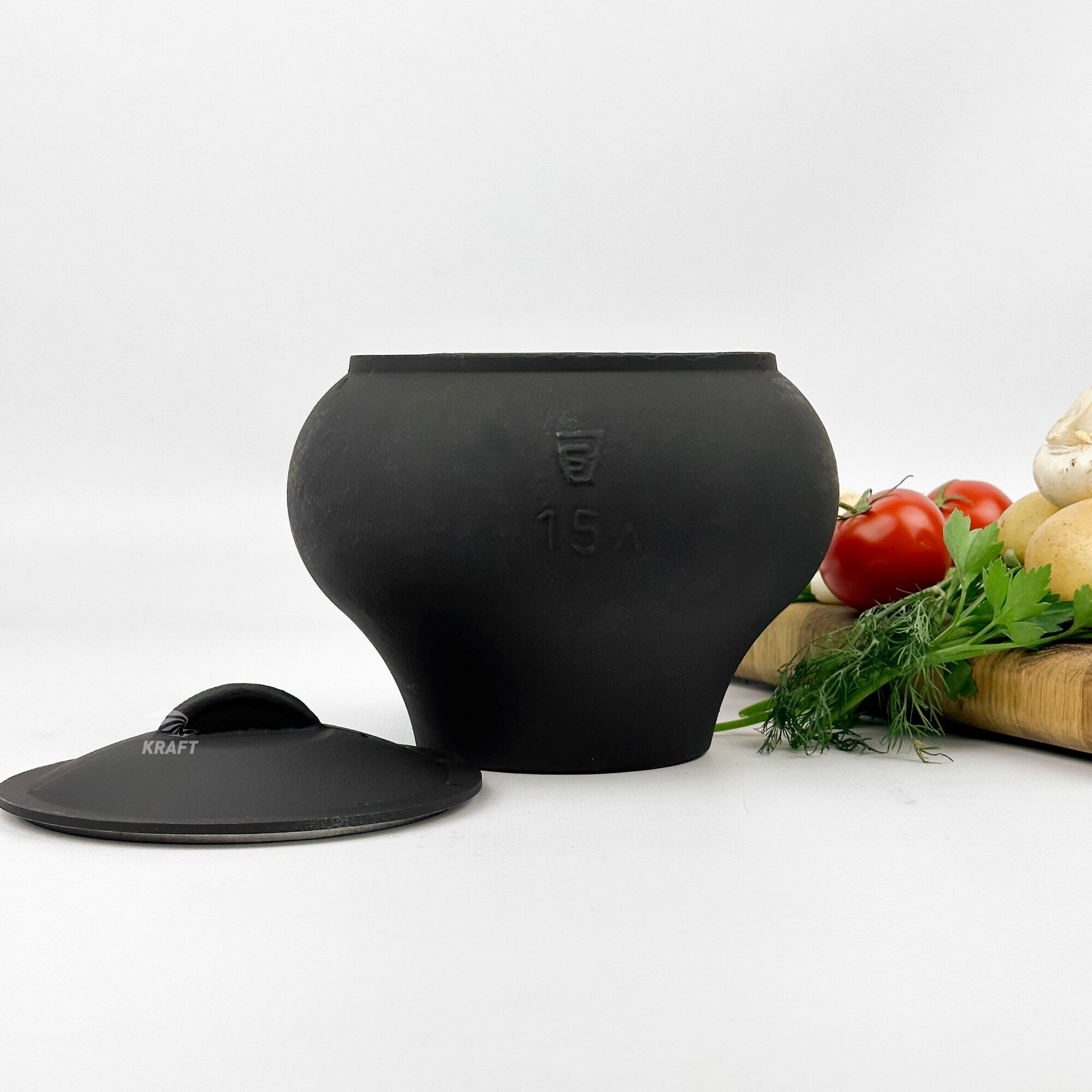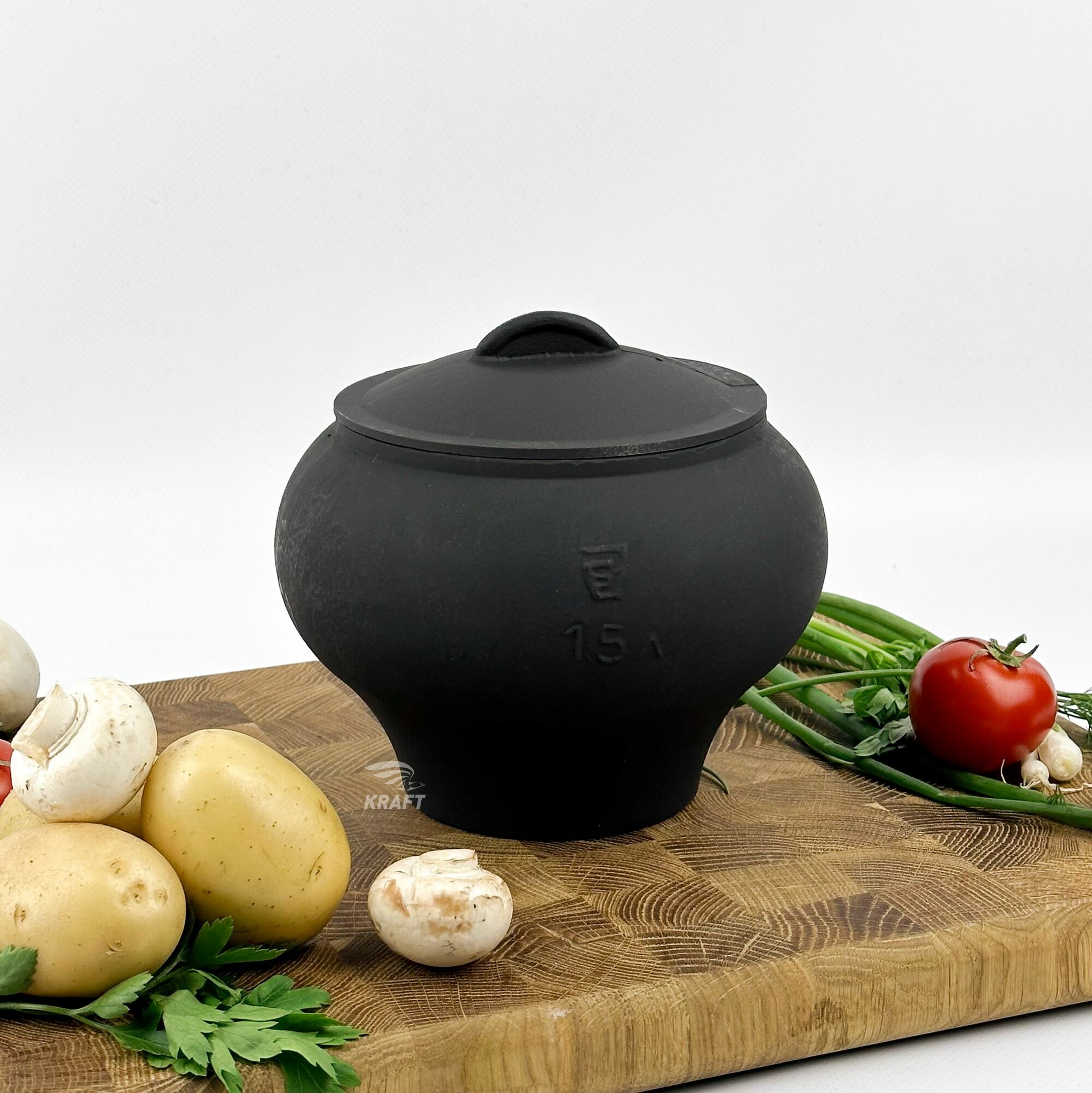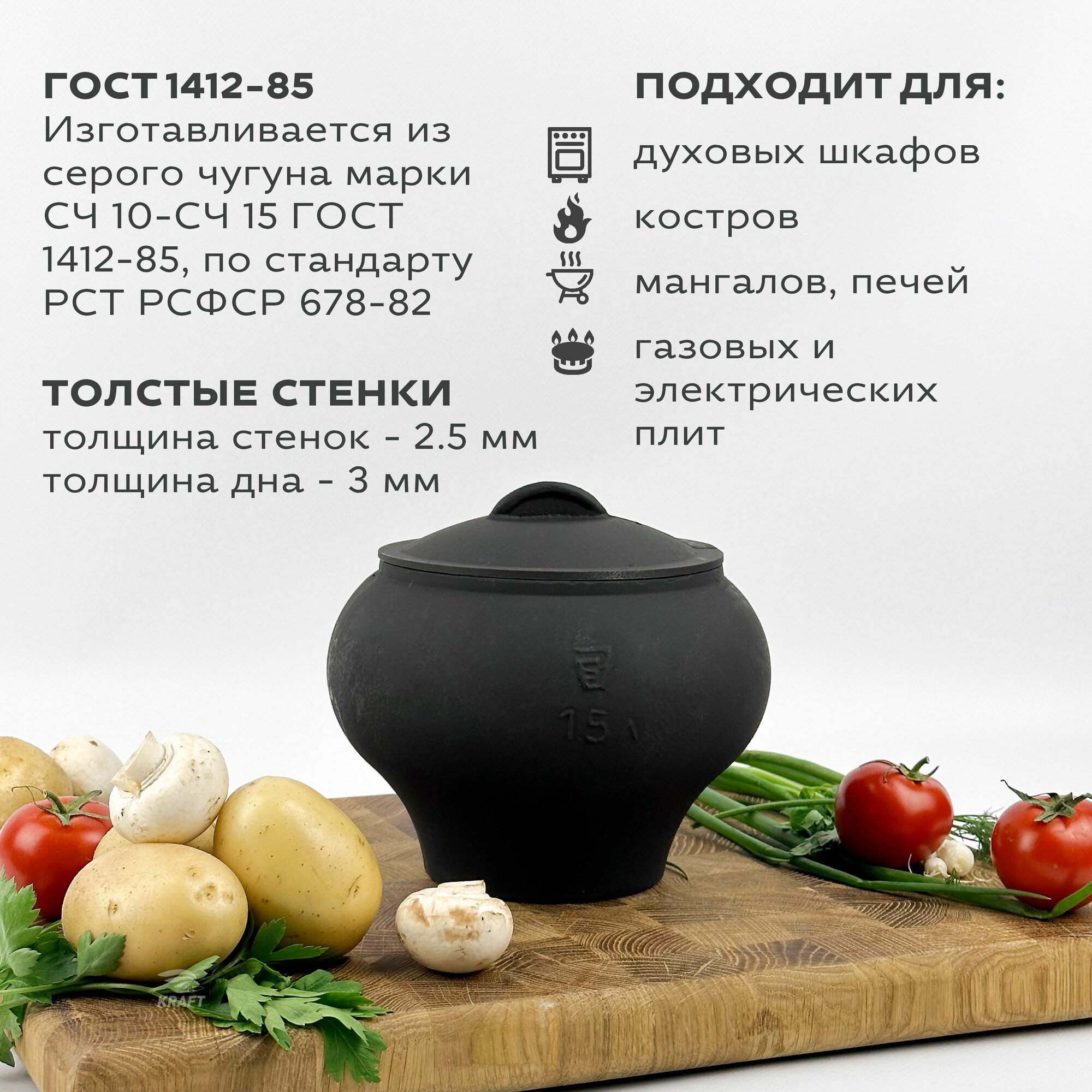 Горшок чугунок чугунный 1.5 литра с алюминиевой крышкой в комплекте для приготовления пищи на костре, в печи, в духовке интересное: