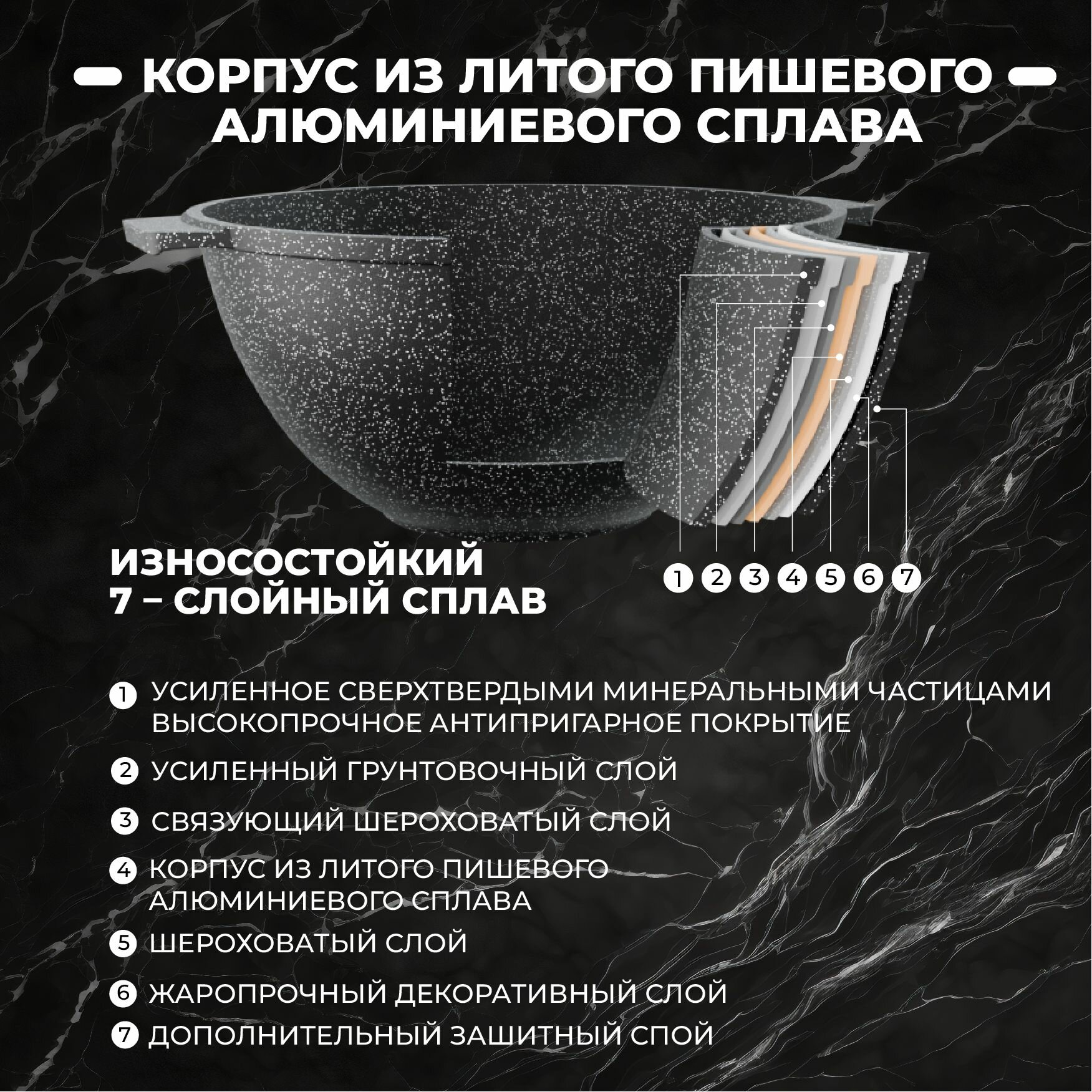 Казан алюминий, антипригарное покрытие, 6 л, Granit Perfection black, с крышкой, Алтей, 04-0650-310