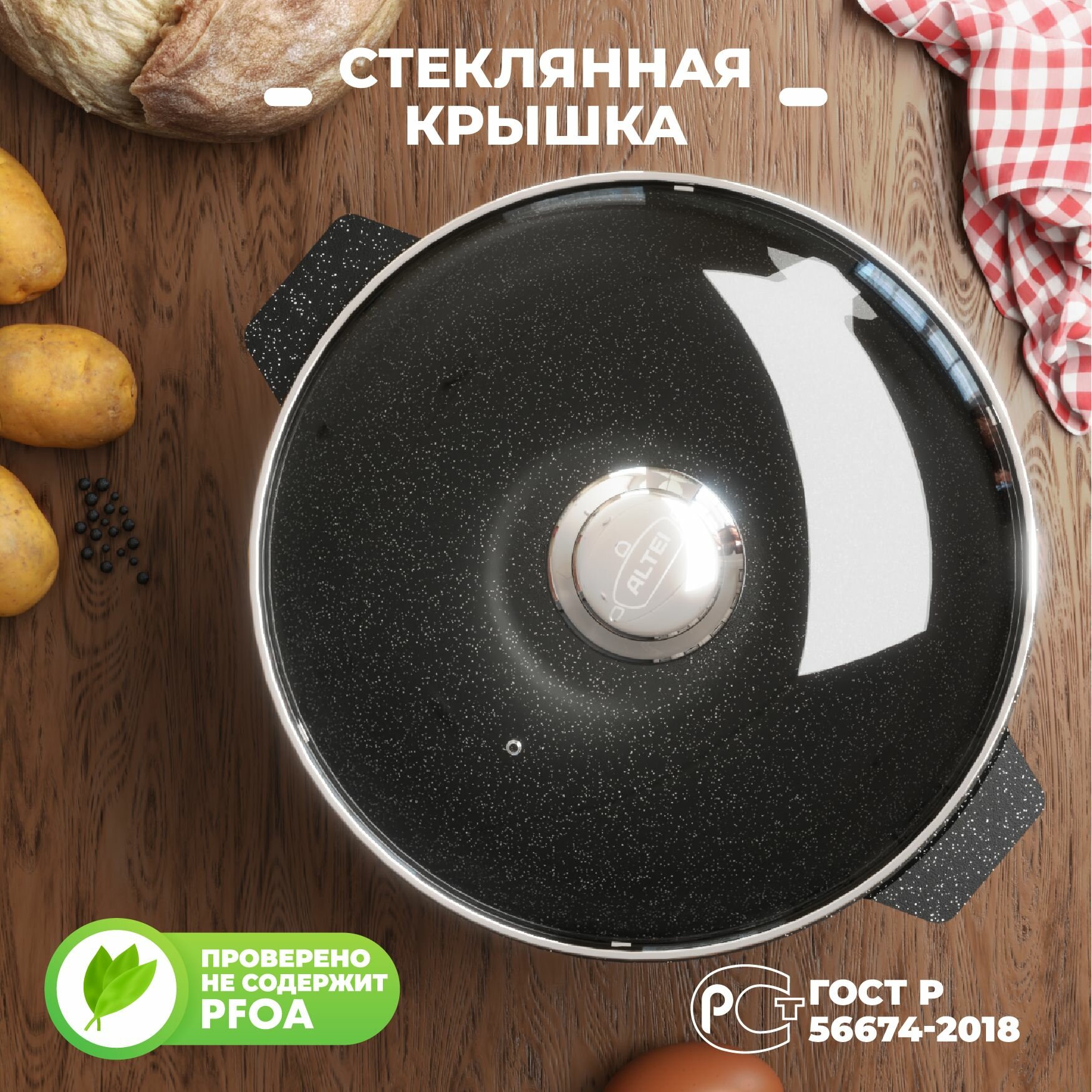 Казан алюминий, антипригарное покрытие, 6 л, Granit Perfection black, с крышкой, Алтей, 04-0650-310