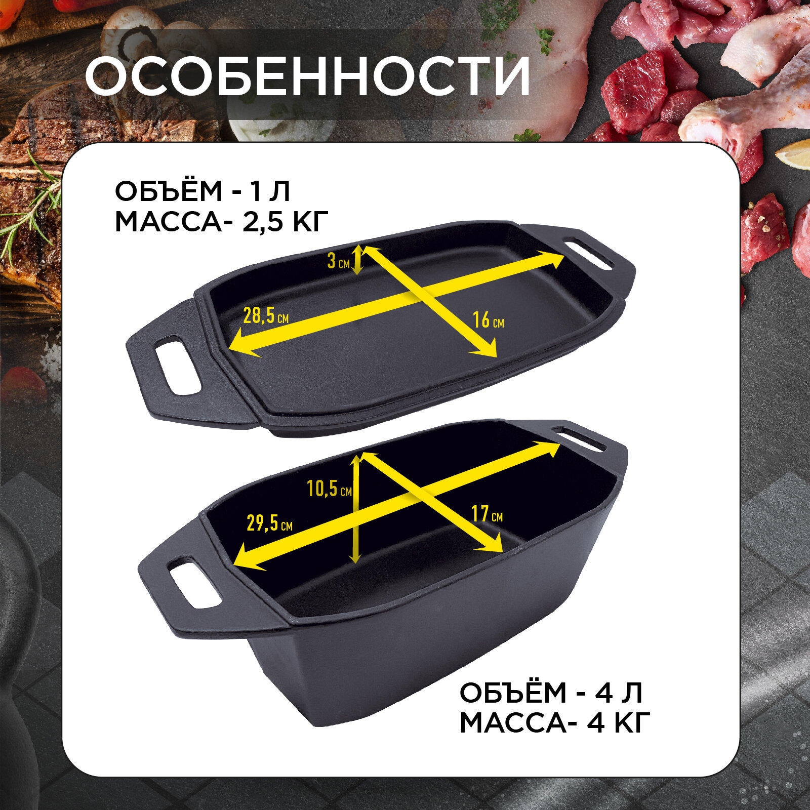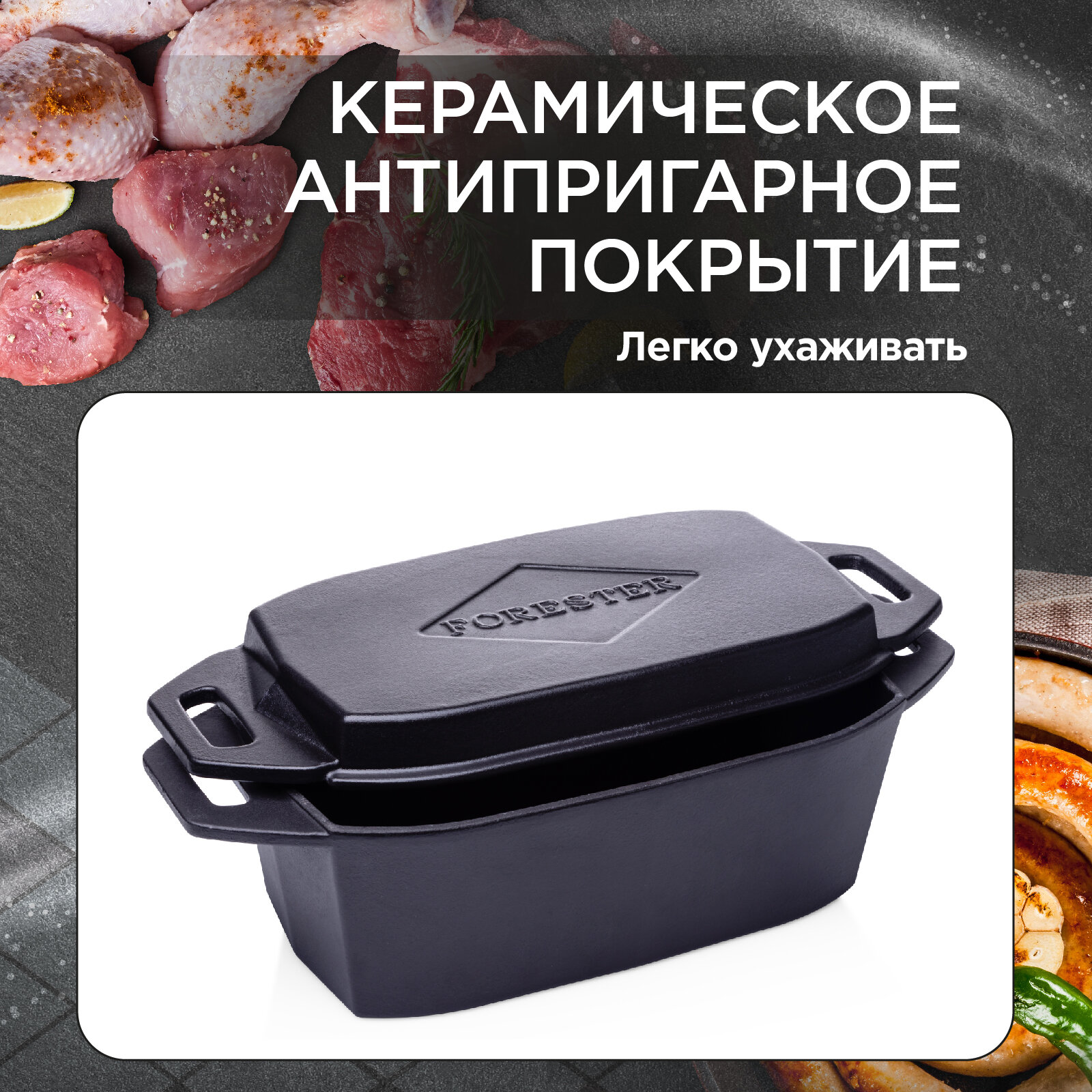 Кассероль чугунный Forester для запекания и томления, птицы, мяса, 32х20х12 см, с крышкой-сковородой интересное: