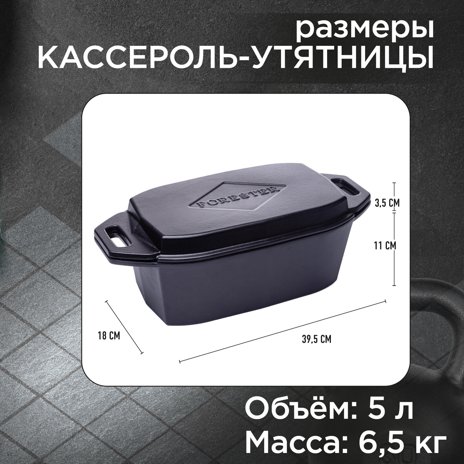 Кассероль чугунный Forester утятница для запекания и томления, птицы, мяса, 32х20х12 см, с крышкой-сковородой