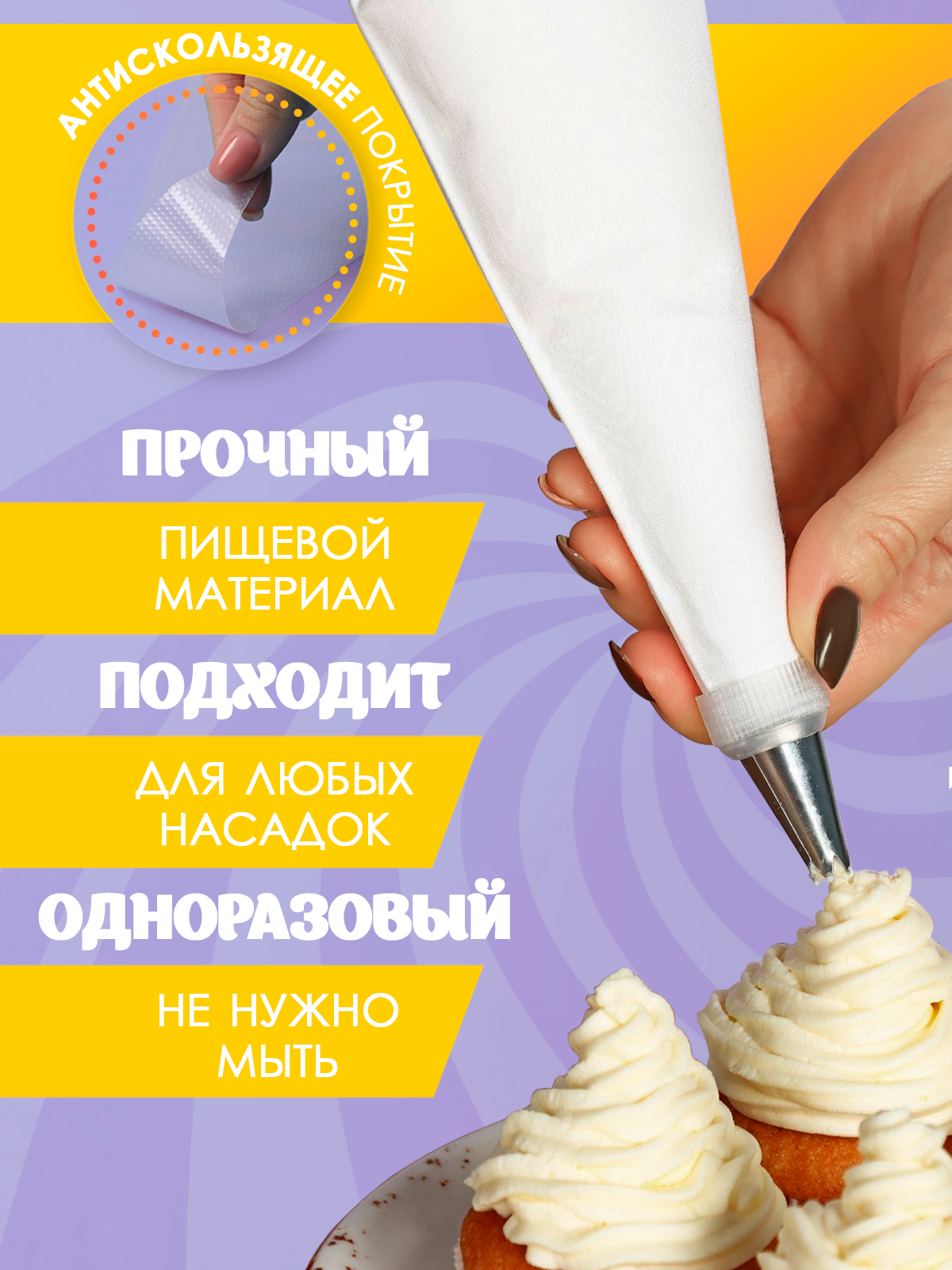Кондитерские мешки одноразовые, 30 мкм, 27×17 см (размер S), 100 шт