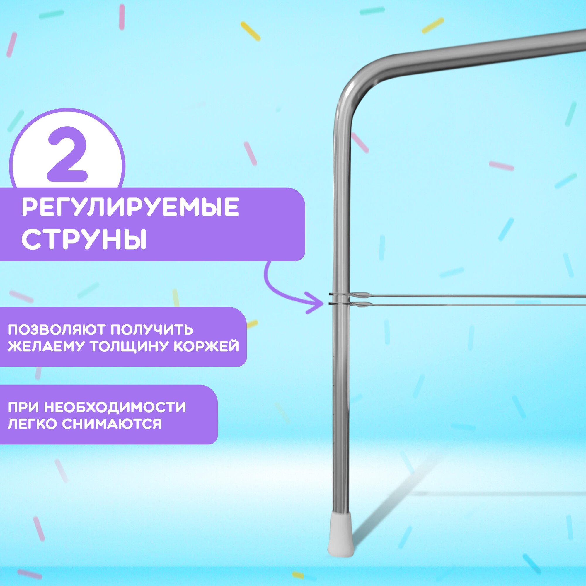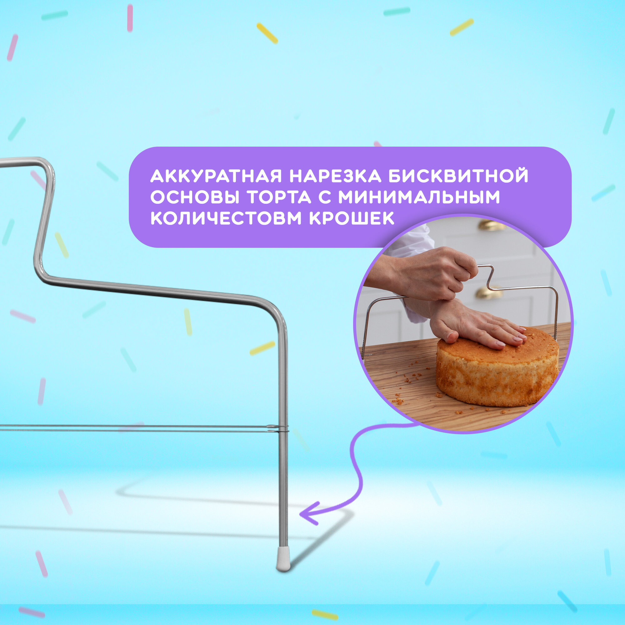 | Дополнительная информация | Нож для бисквита , торторезка , нож-струна для нарезки фигурной резки торта Доляна |
