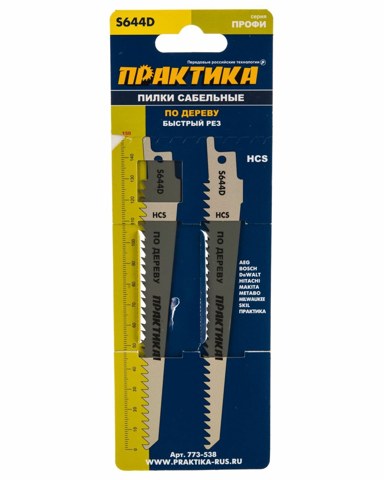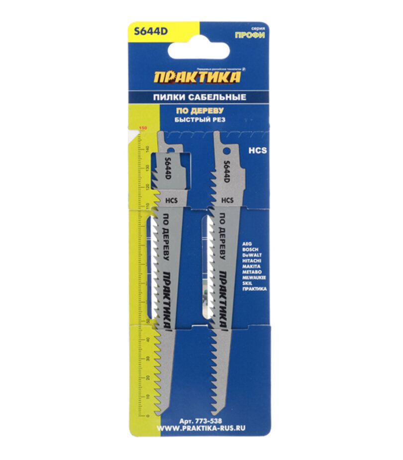 Полотно пильное для сабельных пил ПРАКТИКА S644D HCS, по дереву, дл. 150 мм, (2 шт) 773-538