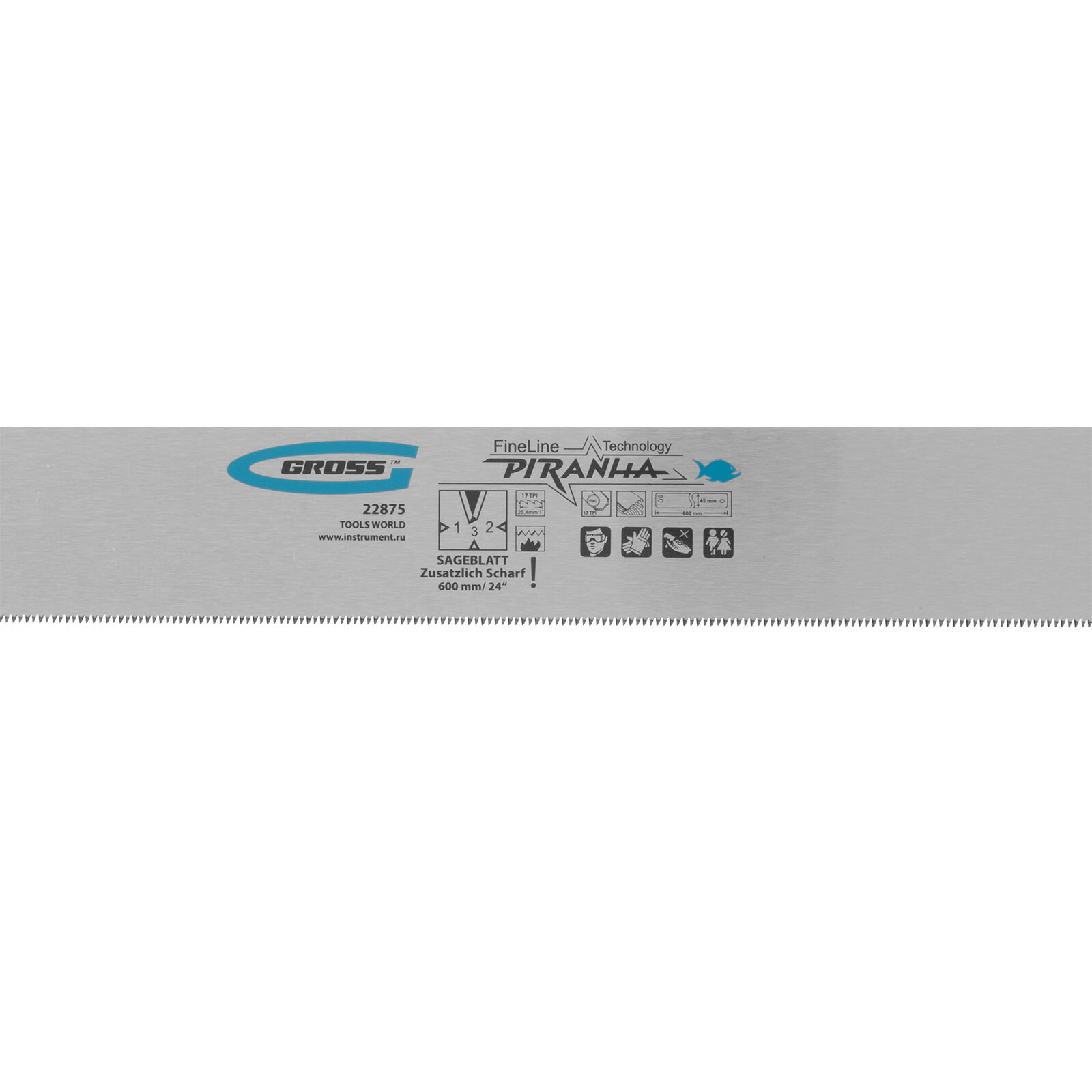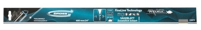 Купить Пильное полотно для прецизионного стусла Gross PIRANHA 600 мм, зуб 3D, каленый зуб, 18 TPI 22875