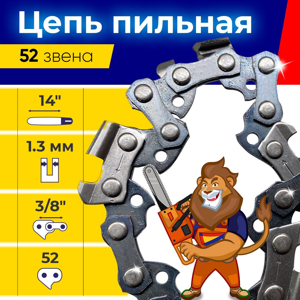 Цепь для бензопил / цепь для электропил / цепь пильная шаг цепи 3/8" (0.375) шир.паза 1.3мм, 52 звена, левша, 1 шт. интересное: