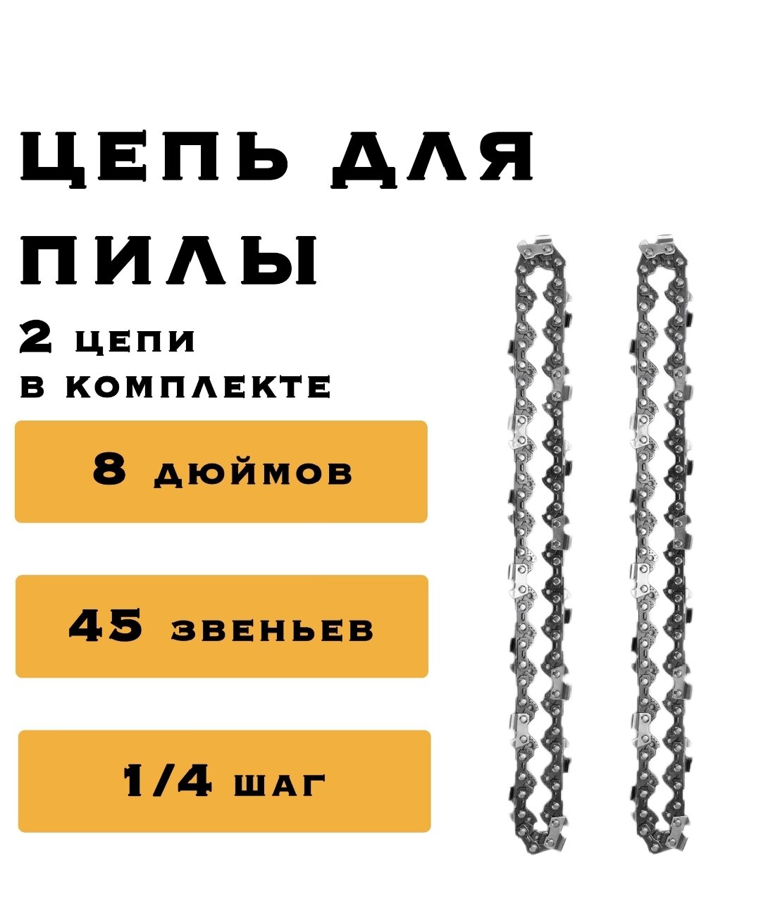 Купить 2 x Цепь 8 дюймов для аккумуляторной мини цепной пилы, 45 звеньев, комплект из двух цепей
