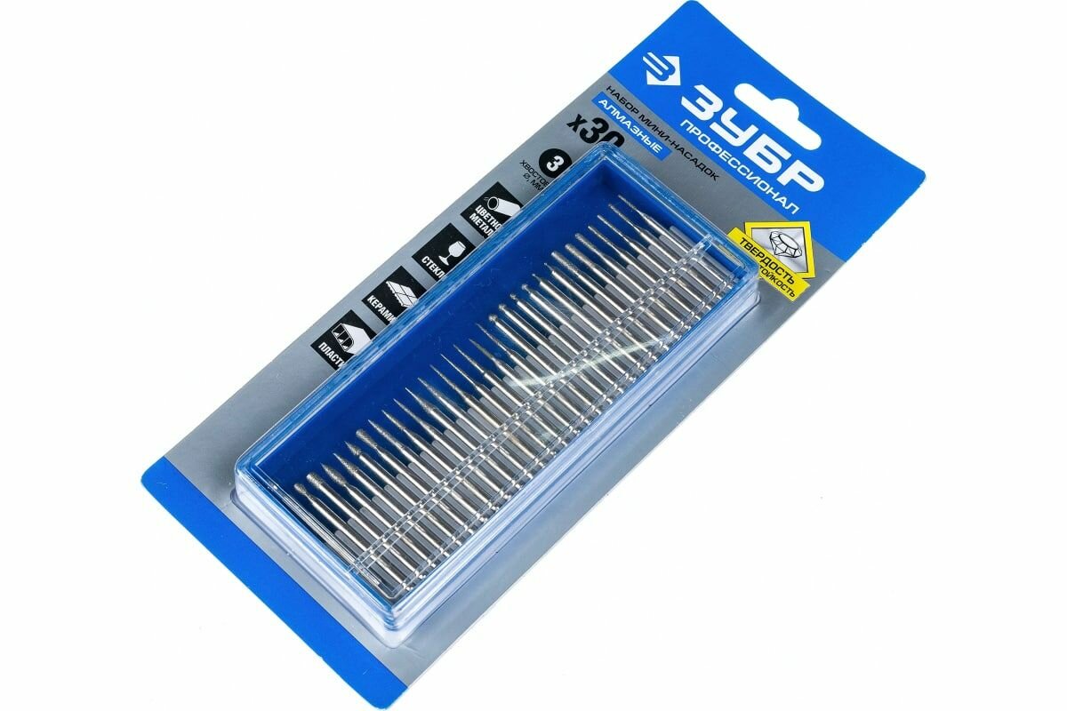 Набор алмазных мини-насадок для гравера ЗУБР 30 шт, хвостовик d 3 мм, Р 150 - 180, 33383-H30