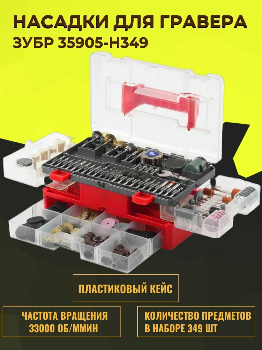 ЗУБР 349 предм., набор мини-насадок для гравёра (35905-H349) интересное: