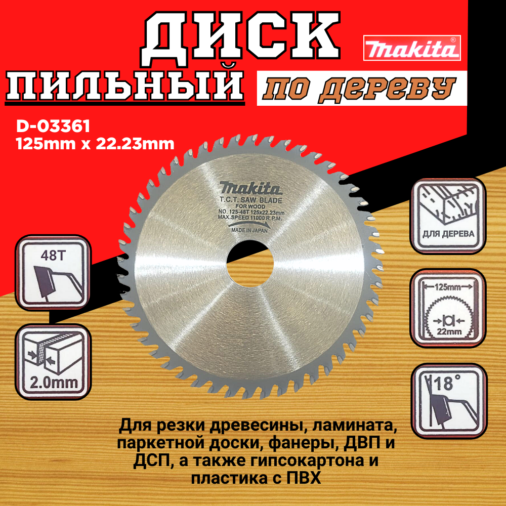 Диск пильный по дереву/ламинату/ДСП/гипсокартон/пластик/ для УШМ 125х22.23мм Makita интересное: