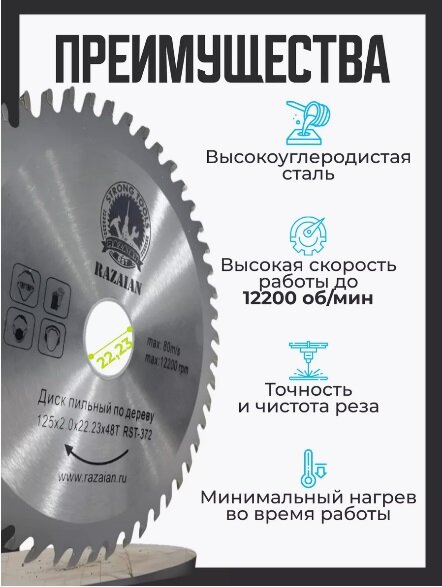 Диск пильный по дереву 125х22,2х2 мм, 48 зубьев интересное: