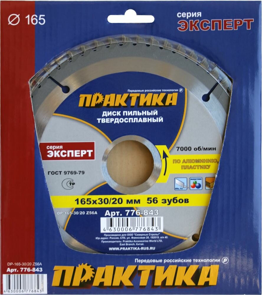 Диск пильный твёрдосплавный по алюминию ПРАКТИКА 165 х 30/20 мм, 56 зубов (165х30/20мм, 56зубов)