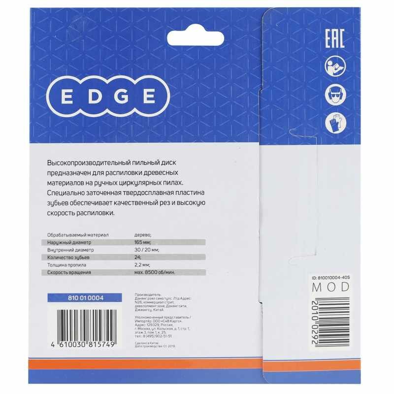 Диск Edge пильный по дереву 165х24х30/20 . интересное: