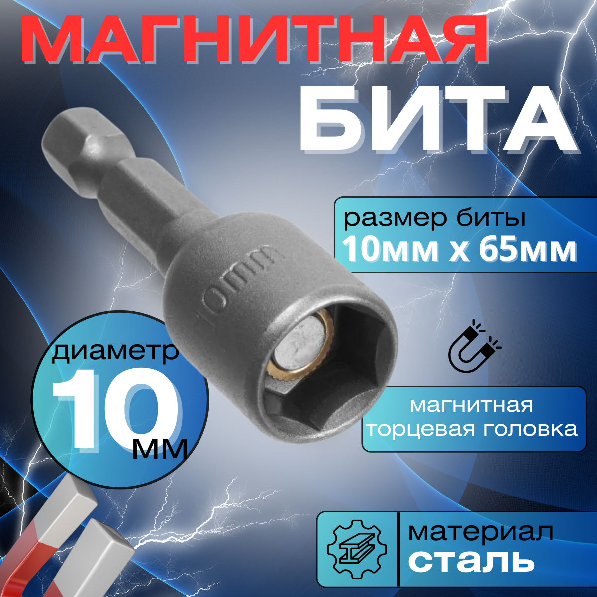 Насадка магнитная для кровельных саморезов, 10 мм, бита (адаптер) с магнитной торцевой головкой, цвет: серебристый интересное: