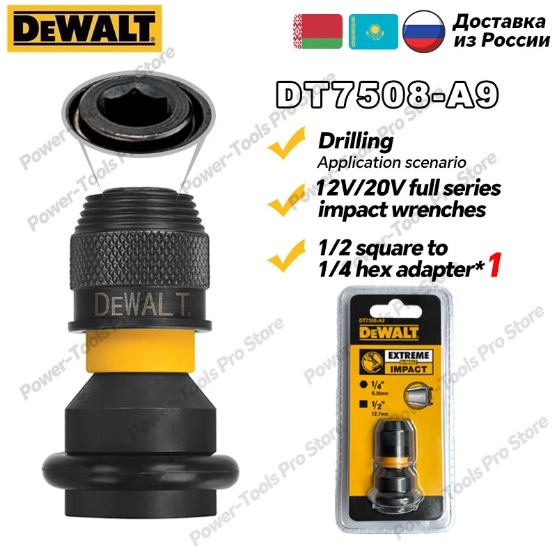 Адаптер для ударных гайковертов шестигранник 1/4F - квадрат 1/2F Dewalt DT7508-A9 интересное: