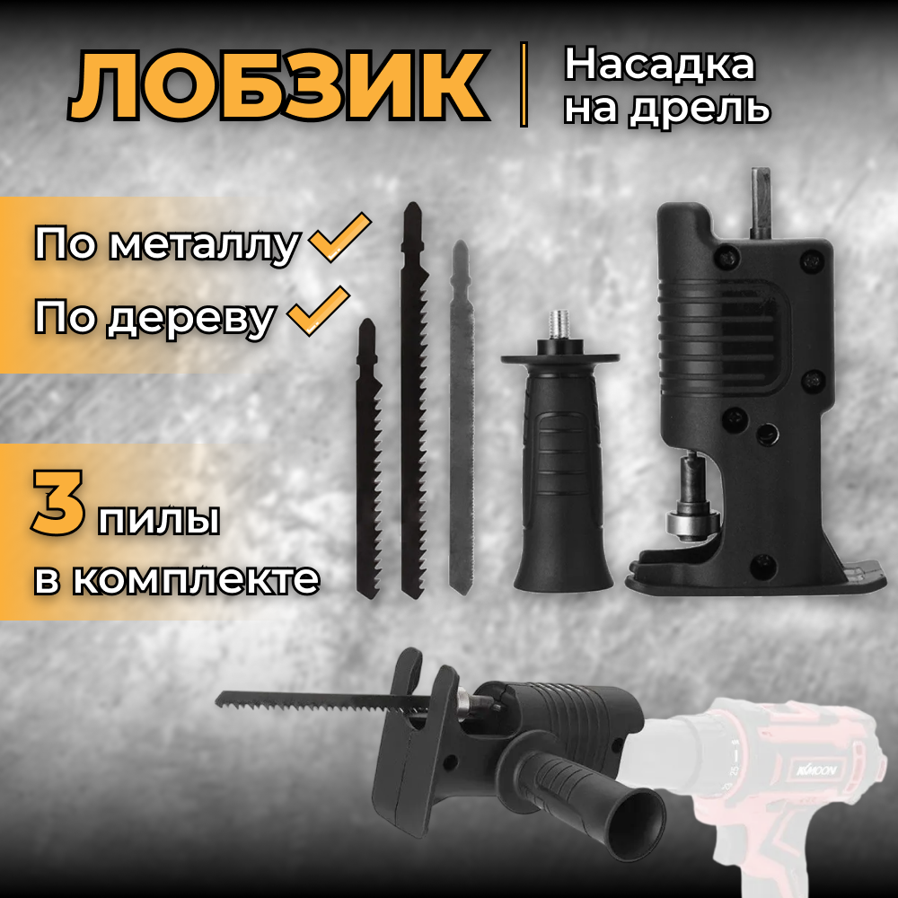 Лобзик - насадка на шуруповерт, 3 пилы для разных задач в комплекте интересное: