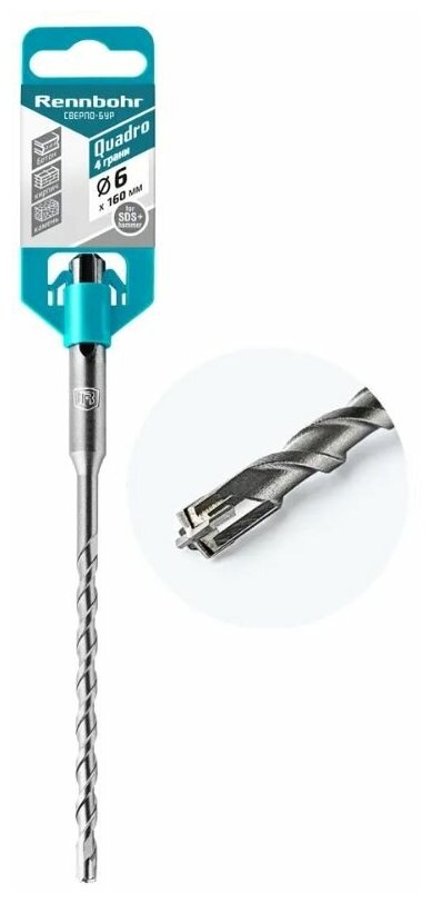 Бур по бетону "Rennbohr Quadro" 6*160мм SDS+ интересное: