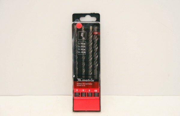 Набор буров по бетону Matrix 5-6-8-10х160 мм, 4 шт, в пласт. коробке, SDS PLUS 71094