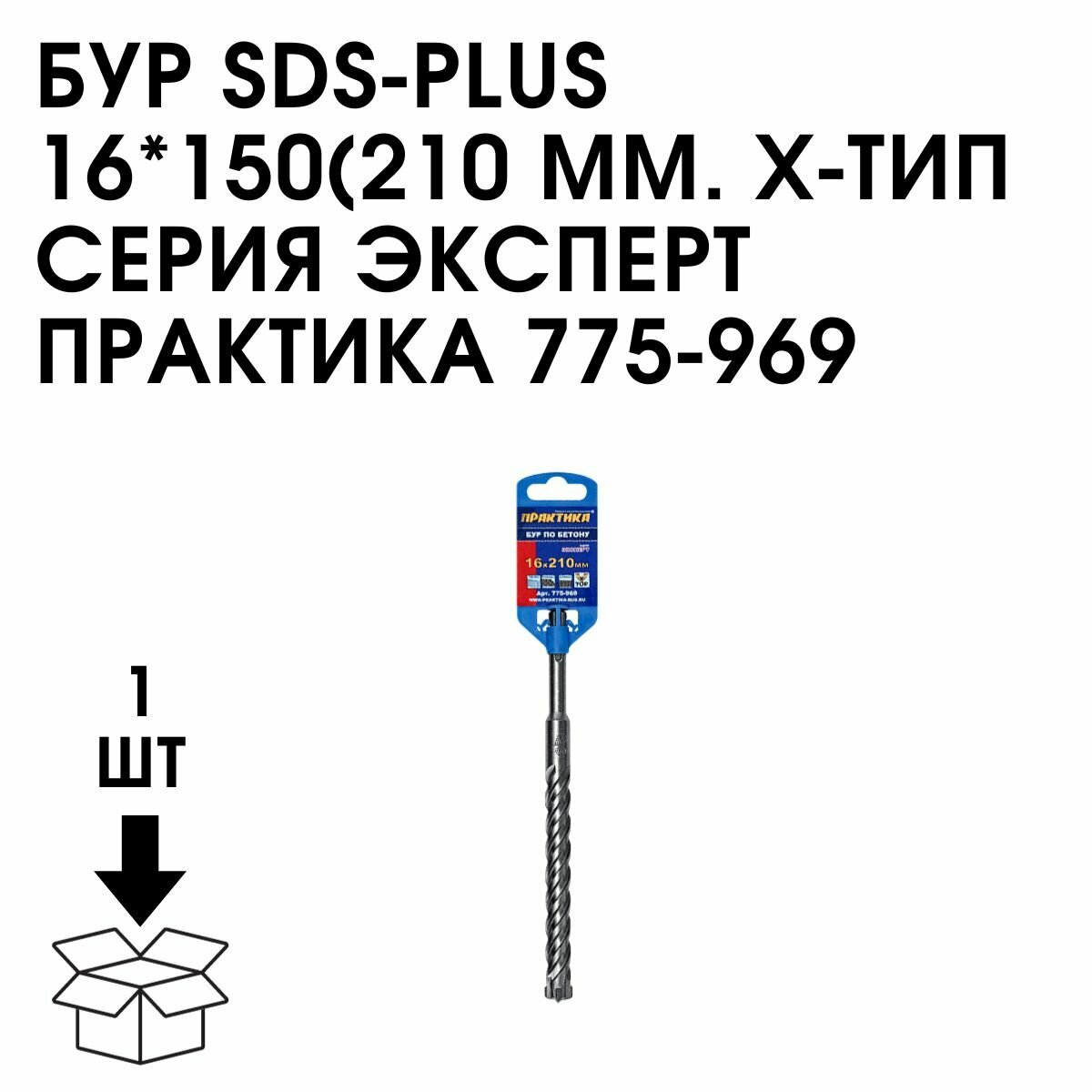 Бур Х-тип серия Эксперт по бетону (16х210 мм, SDS-plus) ПРАКТИКА 775-969
