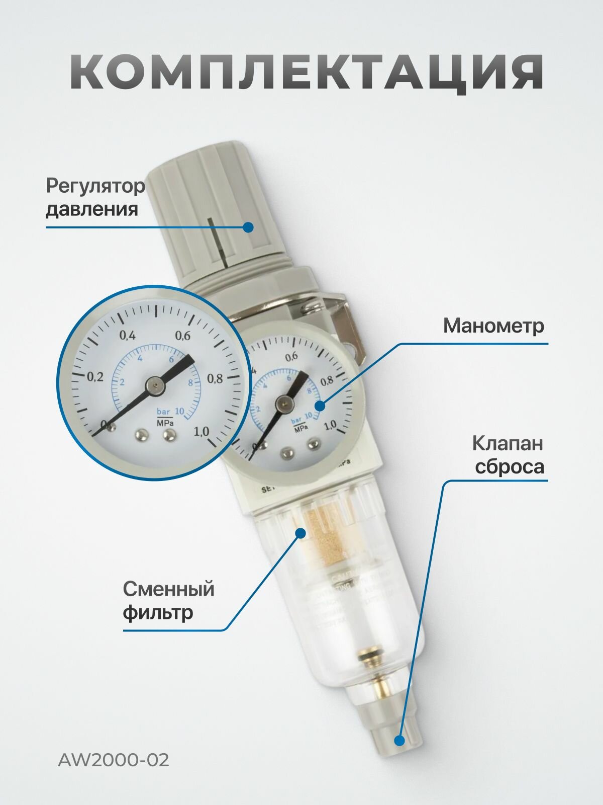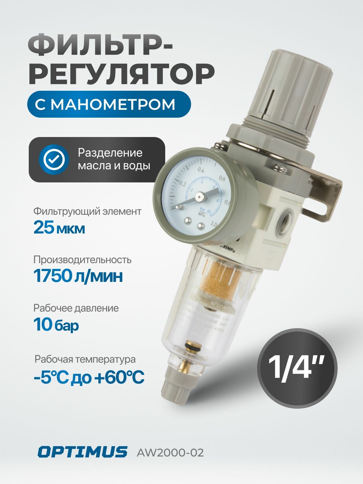 Фильтр-масловлагоотделитель с манометром и регулятором давления 1/4" OPTIMUS HEAVY DUTY AW2000-02 интересное: