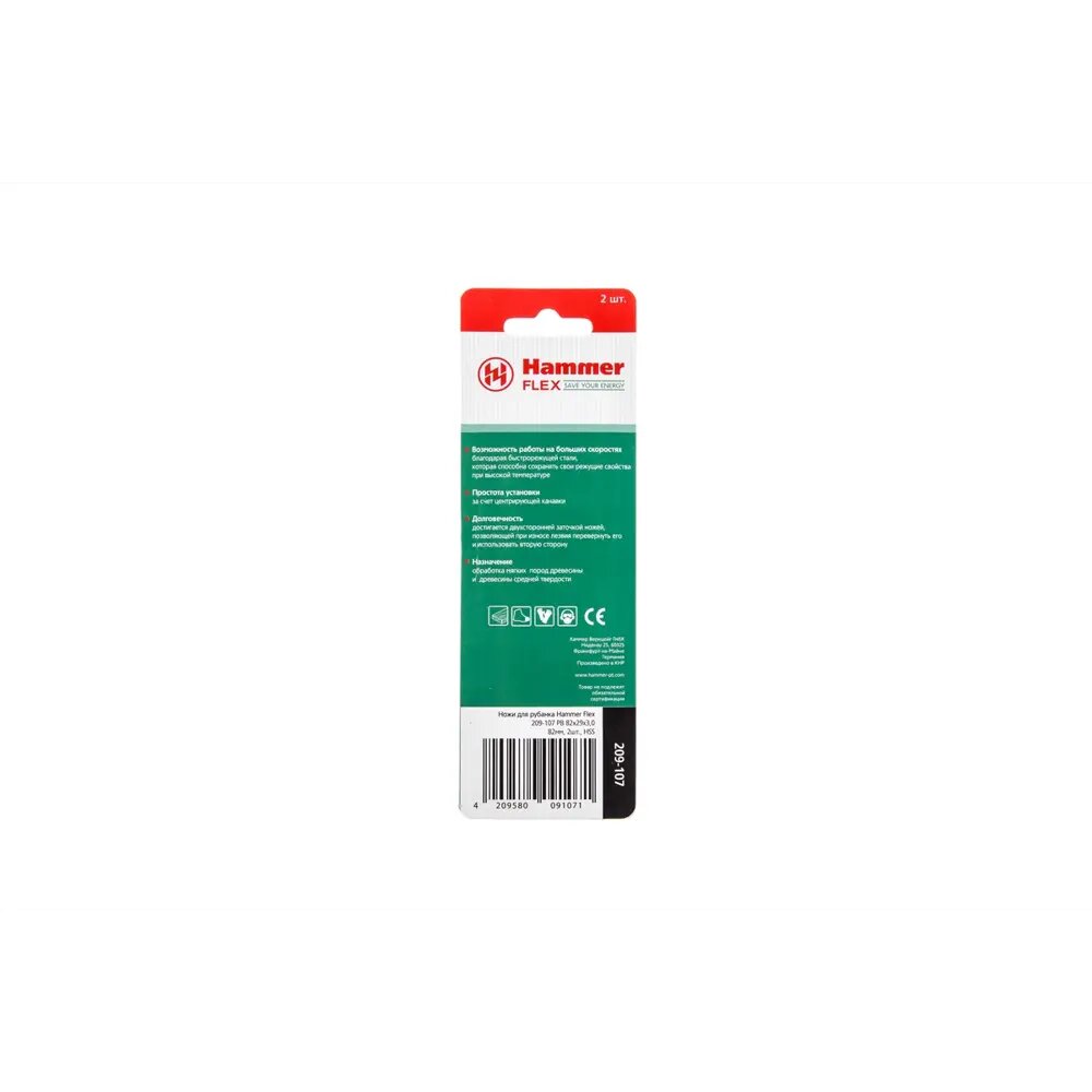 | Подробная комплектация | Ножи для рубанка Hammer Flex 209-107 PB 82x29мм, 2шт |
