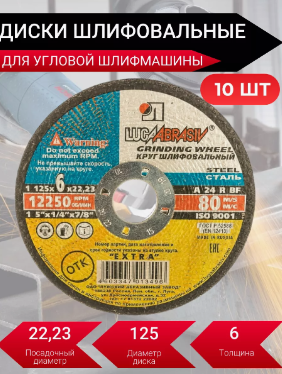 Диск отрезной LUGAABRASIV Extra 41 125x1x22.23 A 54 (10 штук в упаковке!)
