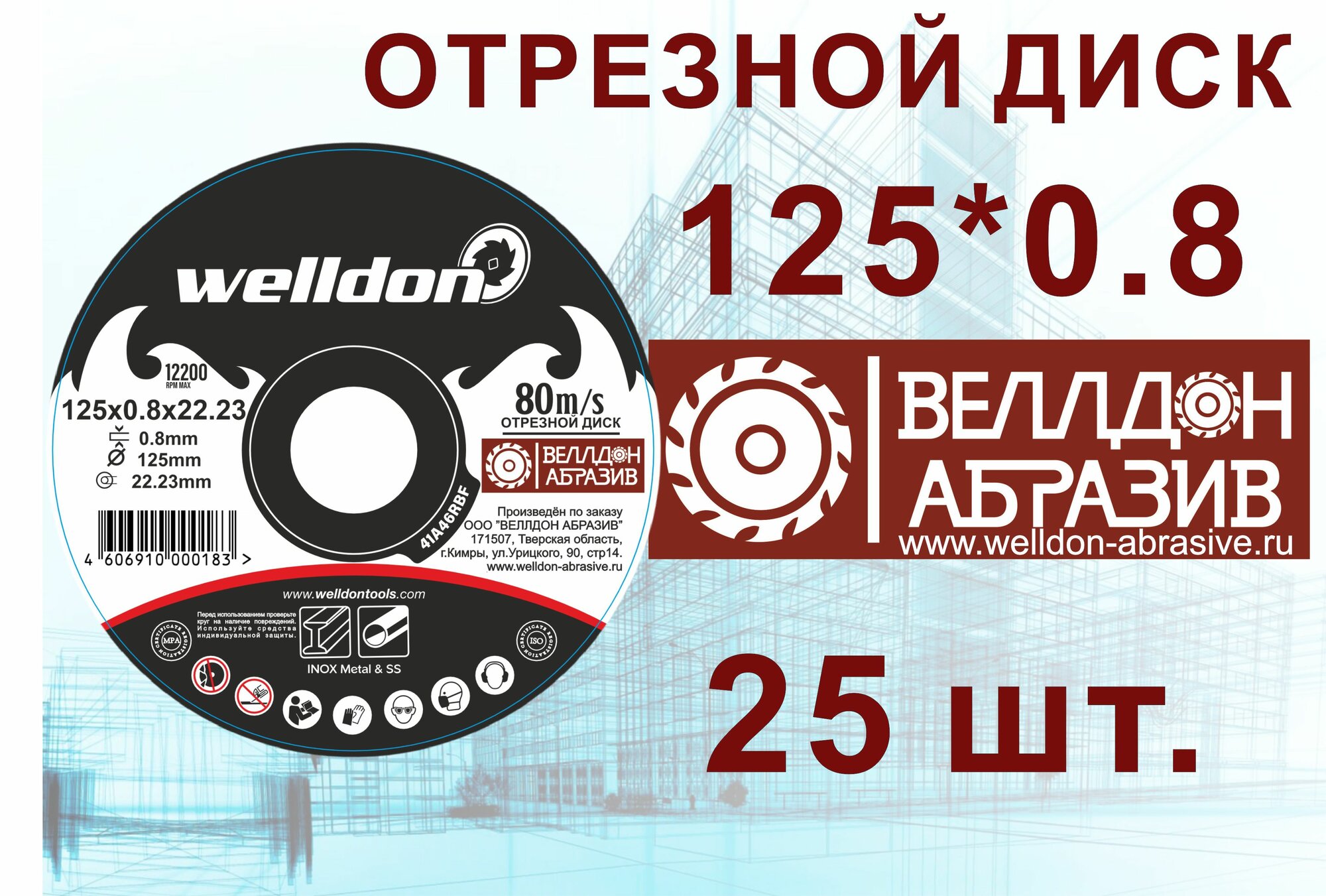 Купить Диск отрезной по металлу и нержавейки 125х0.8х22.23 (25шт) WELLDON