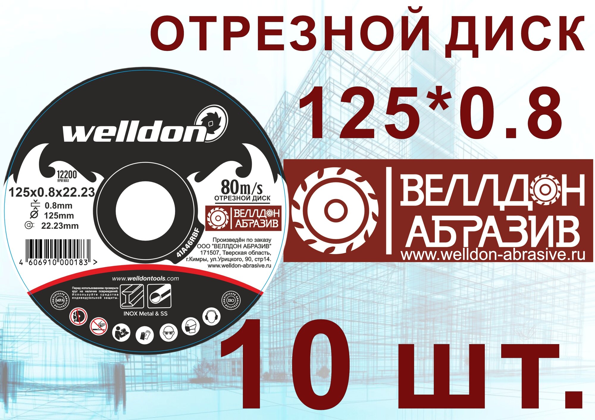 Купить Диск отрезной по металлу и нержавейки 125x 0.8x22.2 (10шт) WELLDON