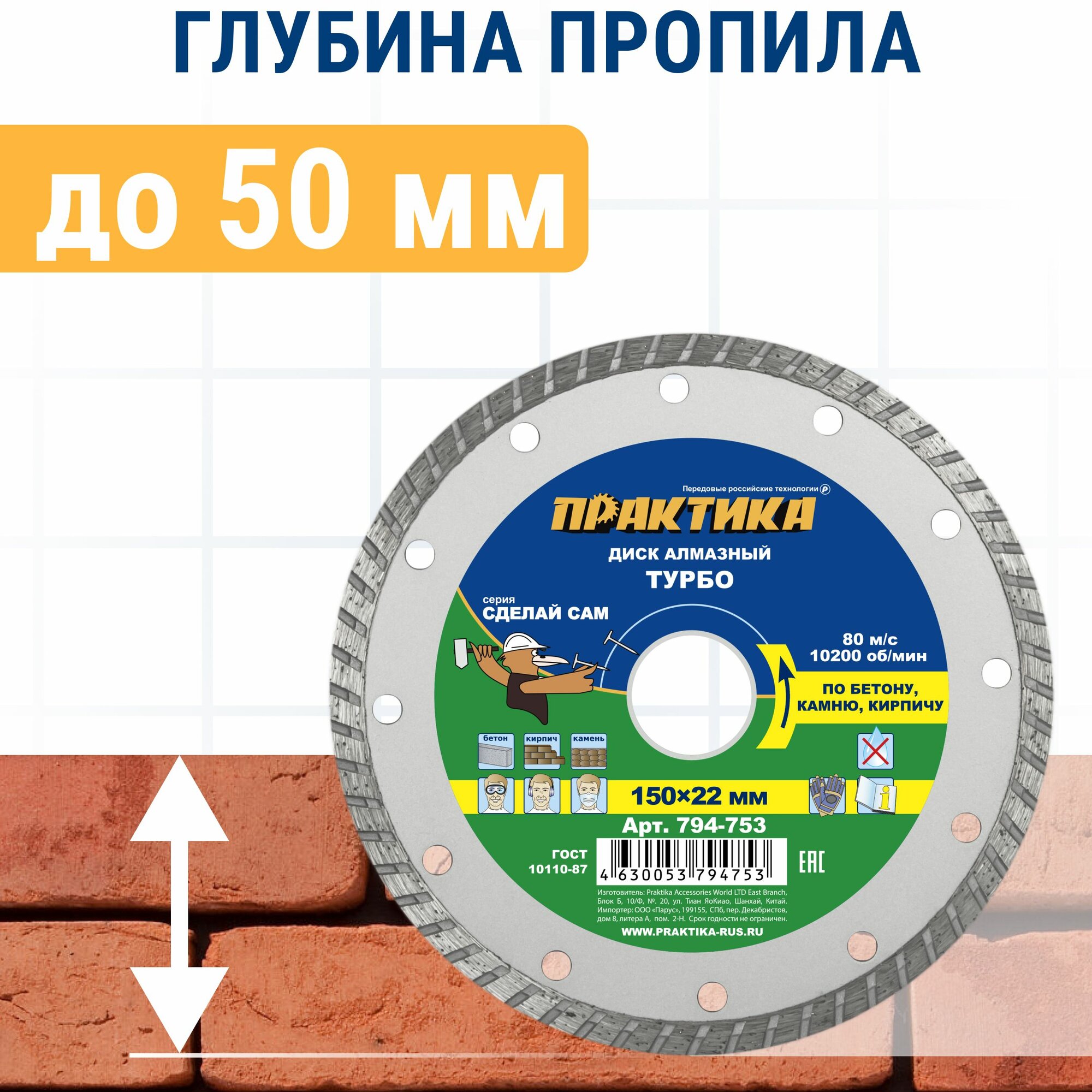 | Дополнительная информация | Диск алмазный турбированный ПРАКТИКА "Сделай Сам" 150 х 22 мм (1 шт.) |