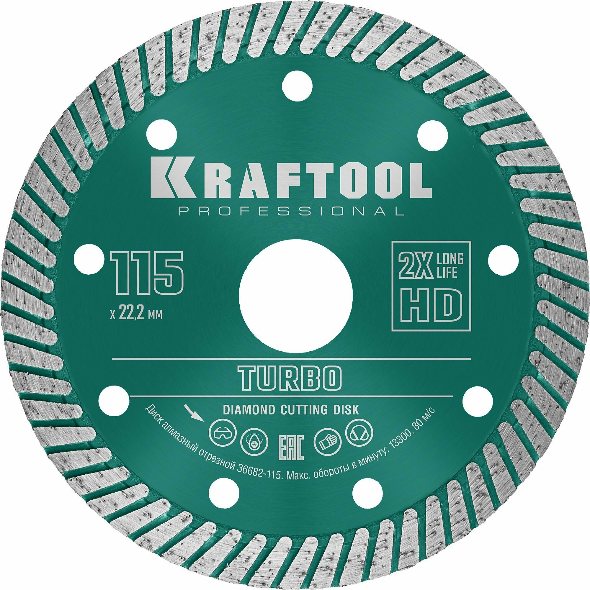 Диск алмазный отрезной турбо по бетону и кирпичу KRAFTOOL Turbo 115х22 мм 36682-115