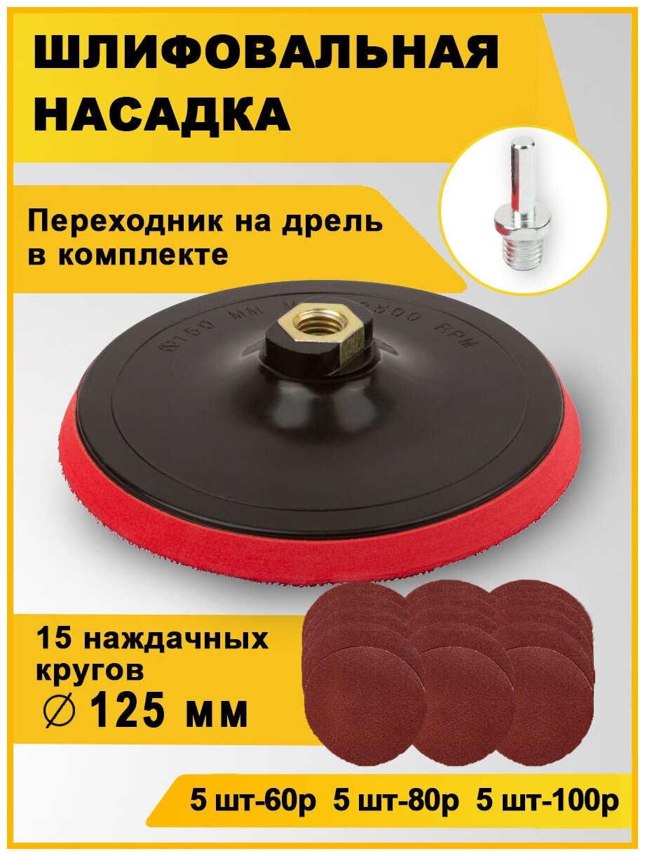 Насадка шлифовальная на липучке 125мм +15 наждачных кругов