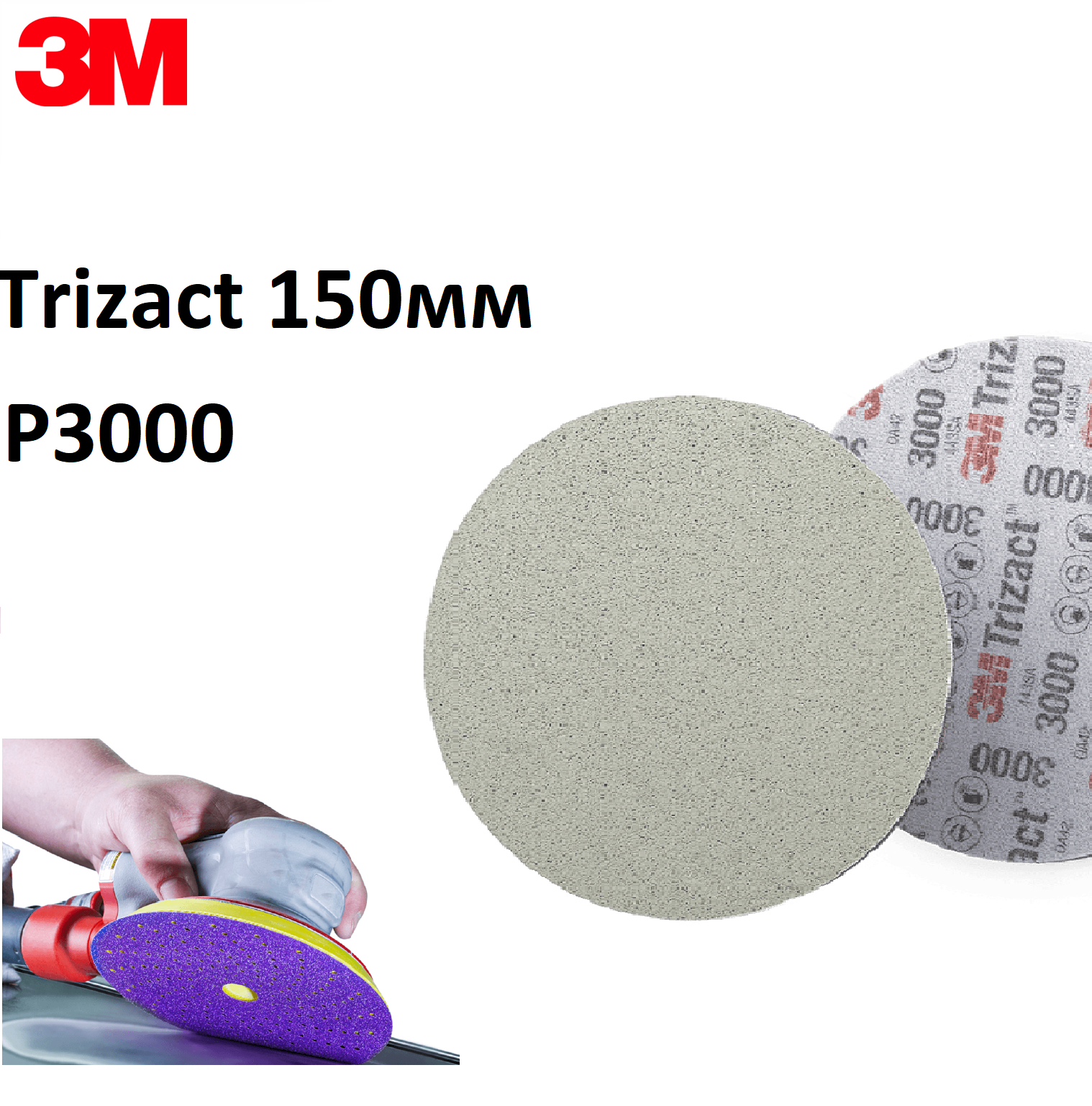 Абразивный полировальный круг 3M™ 50414 Trizact Hookit P3000/150 мм | 3М Тризак серии 443SA, 15 шт.