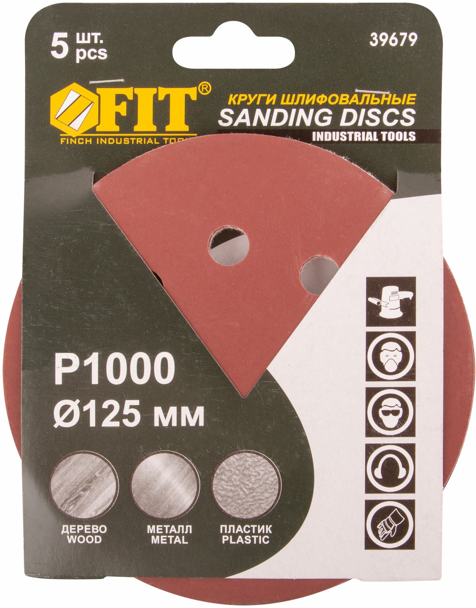 FIT Круги шлифовальные с отверстиями , алюминий-оксидные, 125 мм, 5 шт Р 1000 39679