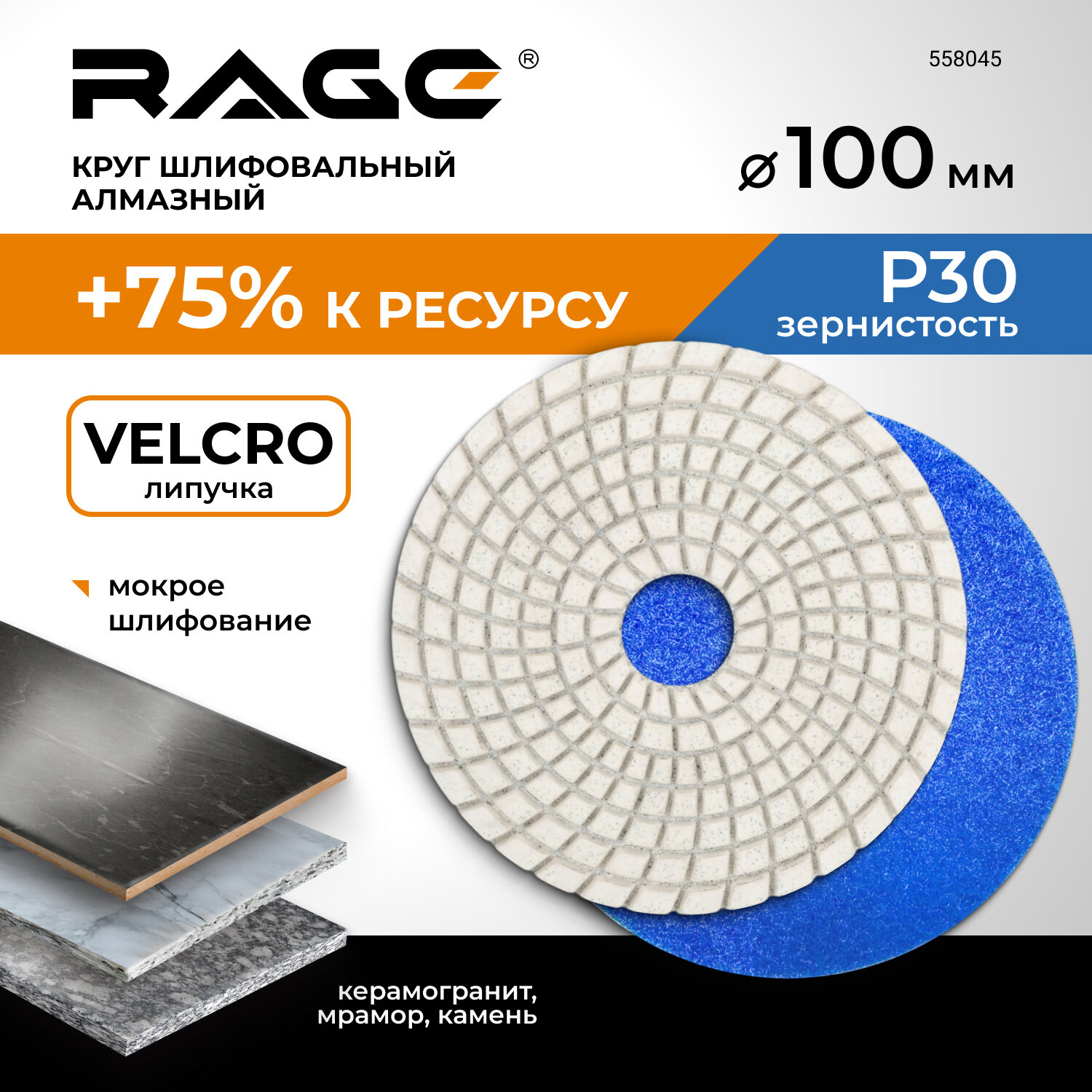Купить RAGE By VIRA Алмазный гибкий шлифовальный круг Черепашка (АГШК) Р30 100мм мокрое шлифование 558045