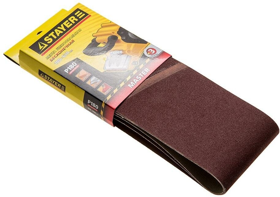 STAYER Лента STAYER "MASTER" шлифовальная универсальная бесконечная на тканевой основе, для ЛШМ, P180, 100х610мм, 3шт, ( 35443-180 )