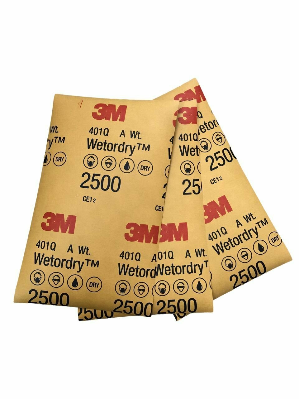 Абразивная бумага / Лист абразивный водостойкий 3M P2500, 138 мм х 230 мм, Wetordry 401Q - 50 штук