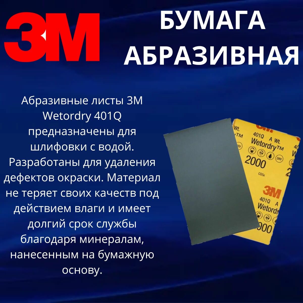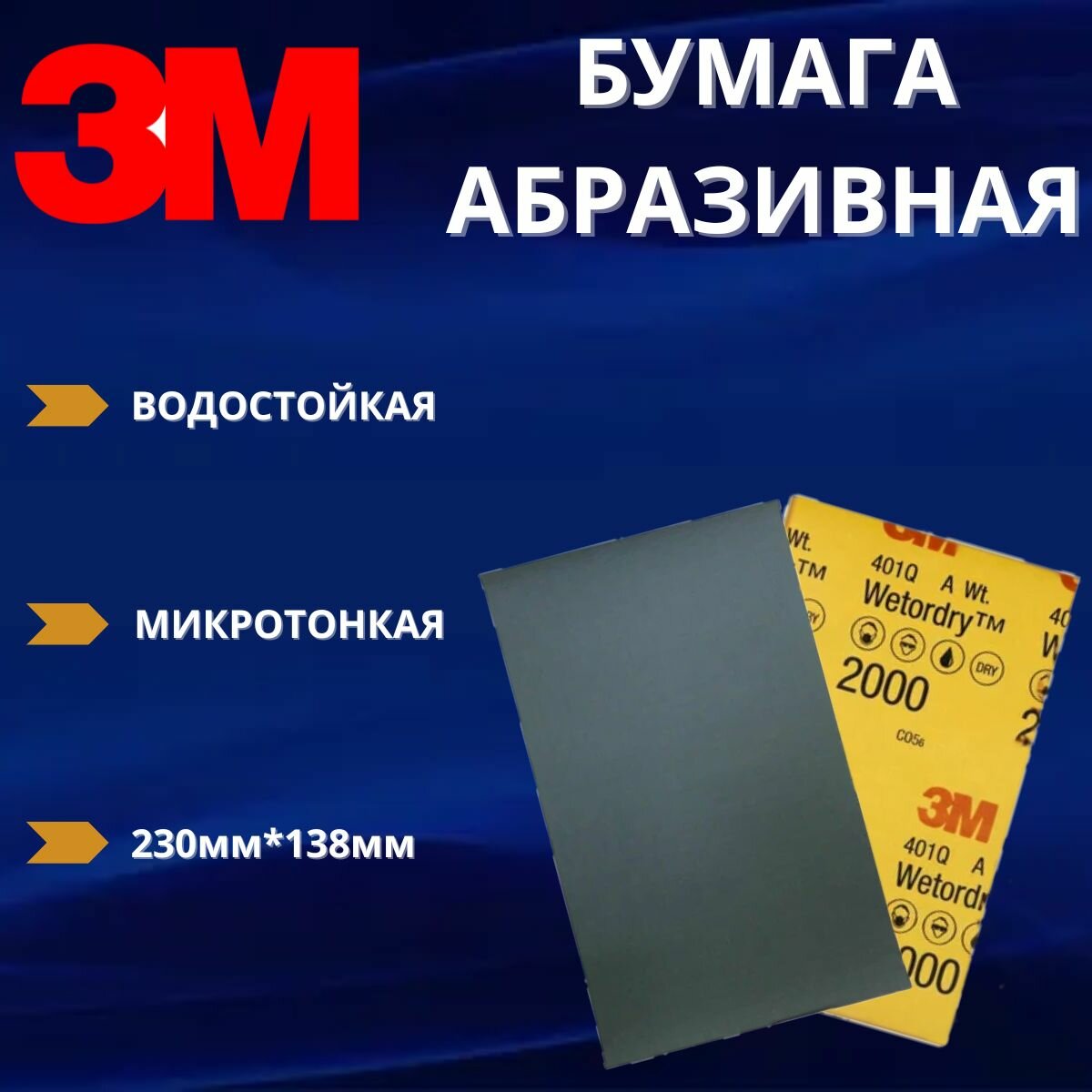 Абразивная бумага / Лист абразивный водостойкий 3M P2500, 138 мм х 230 мм, Wetordry 401Q - 50 штук