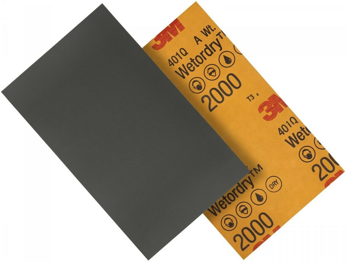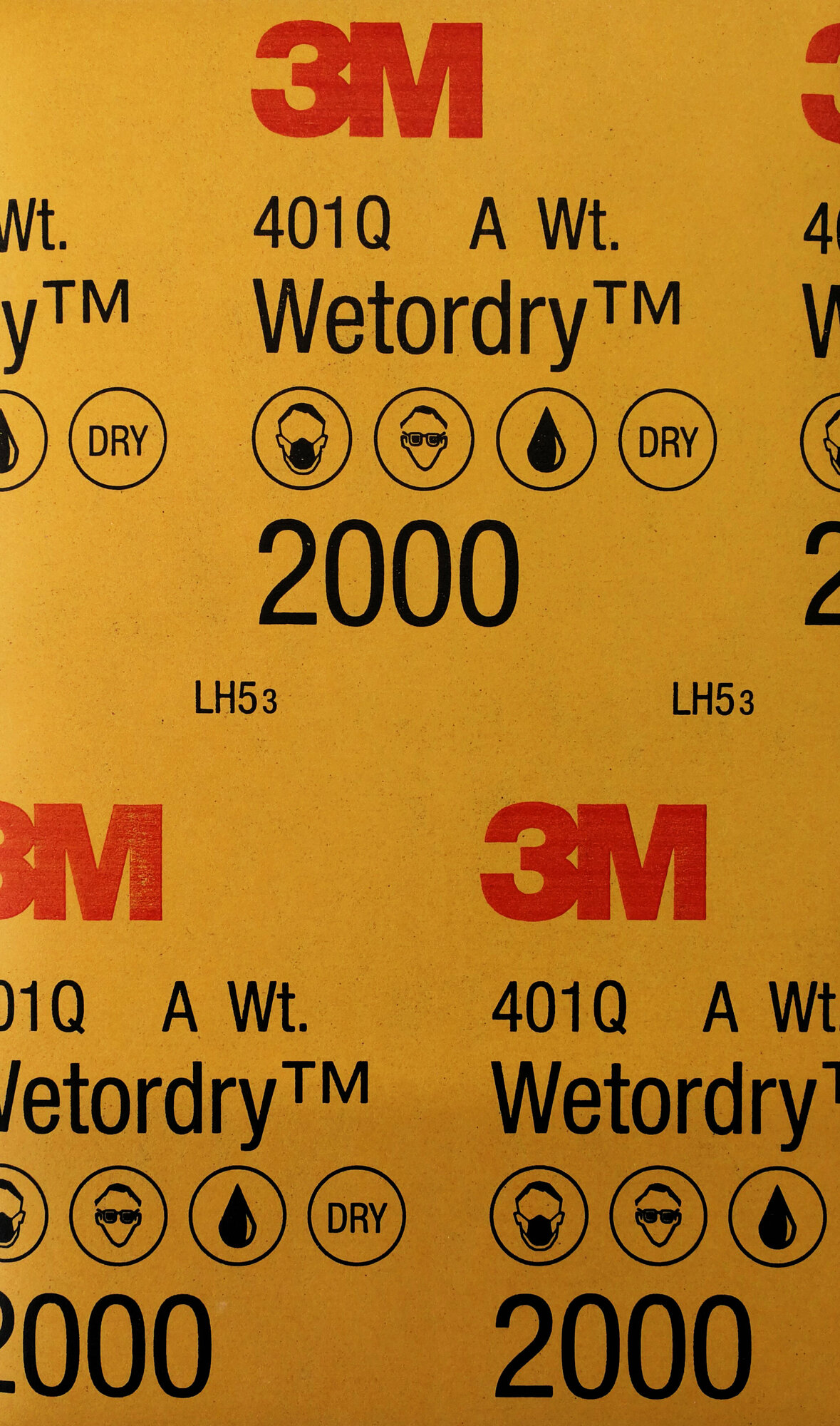 Микротонкий водостойкий абразивный шлифовальный лист 3M™ арт. 02049 Wetordry™ 401Q P2000 (наждачная бумага / наждачка), 138x230 мм, 1 шт.