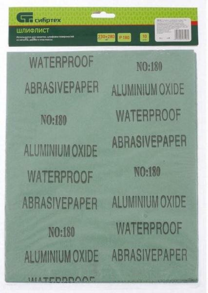 Шлифлист на бумажной основе, P 100, 230 х 280 мм, 10 шт, влагостойкий// Сибртех