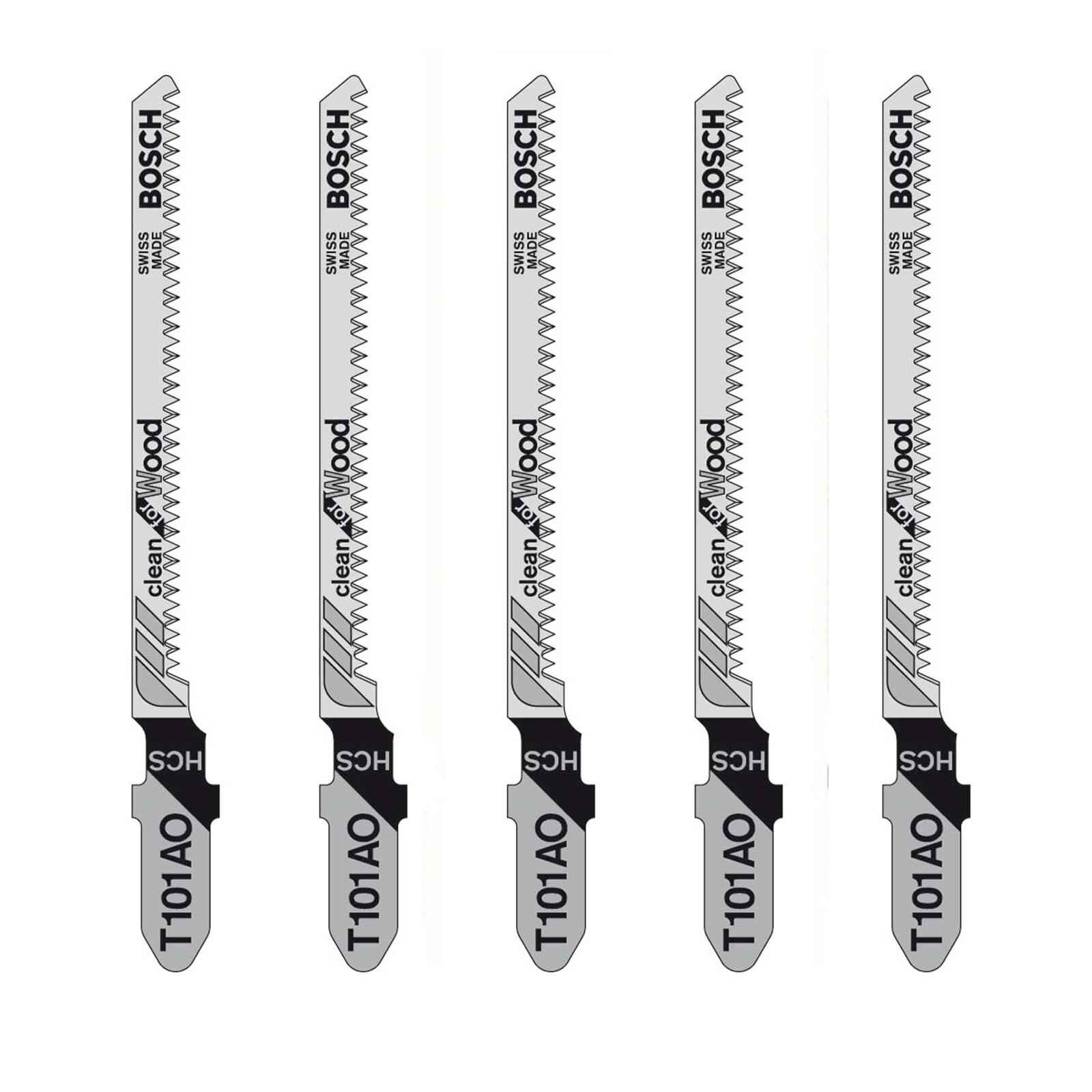 Пилка для лобзика BOSCH T 101AO Clean for Wood, по дереву, чистая криволинейная резка, 5 шт