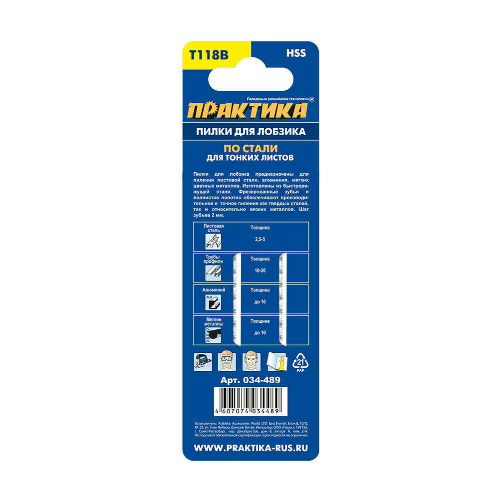 Полотно пильное для лобзика по стали ПРАКТИКА тип T118B 76 х 50 мм, быстрый рез, HSS (2шт.) интересное: