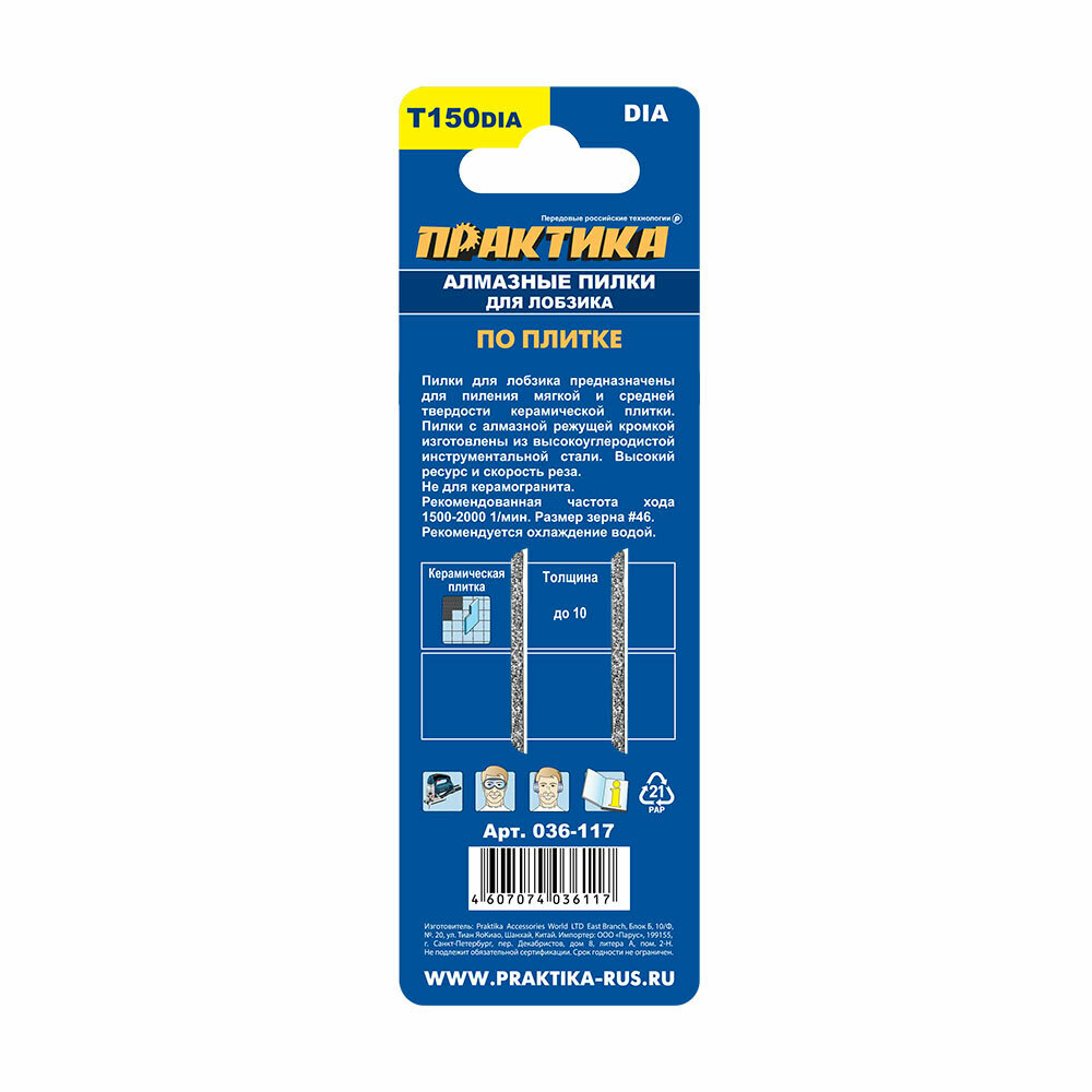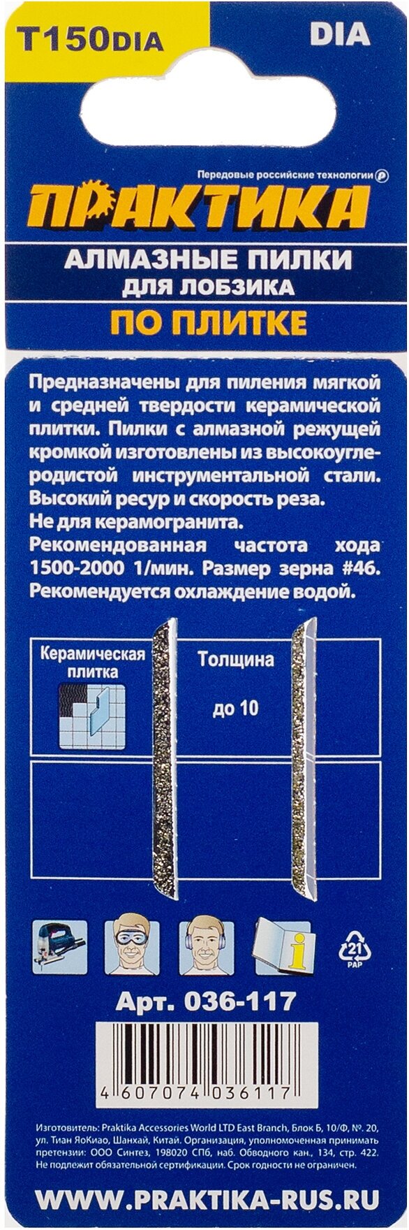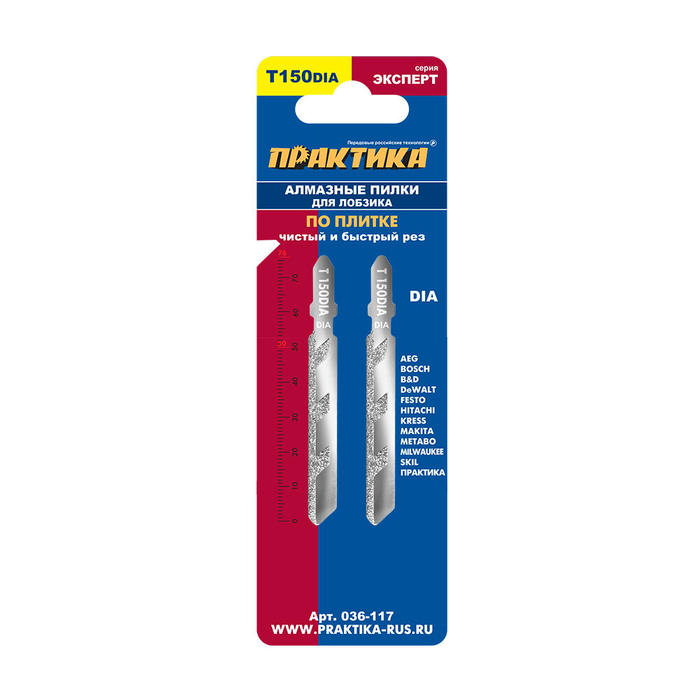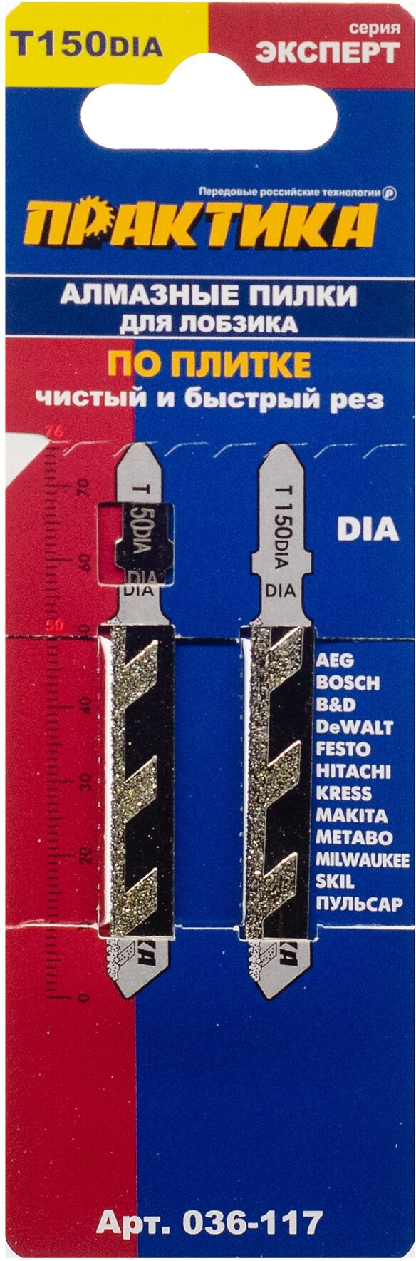 Пилки для лобзика по плитке ПРАКТИКА тип T150DIA 76 х 50 мм, чистый рез, алмазные (2шт.) (036-117) интересное: