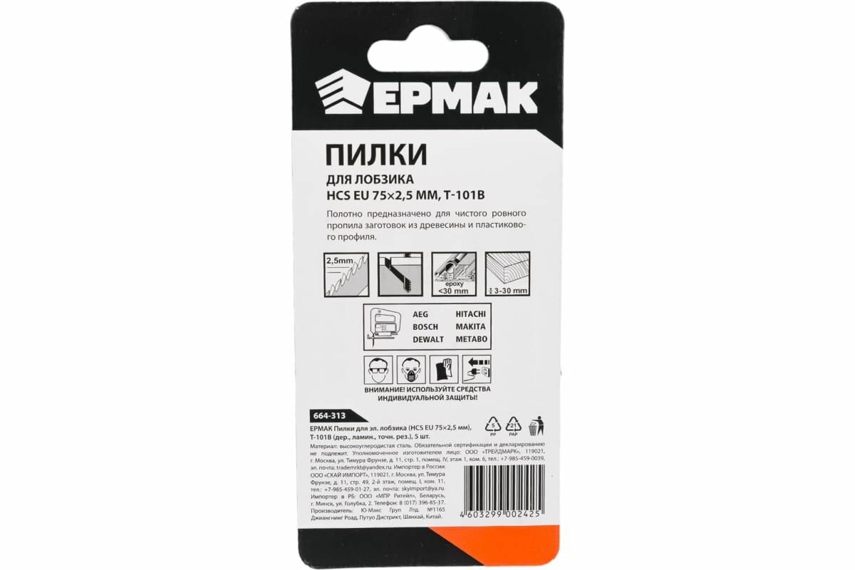 Пилки для эл.лобзика Ермак (HCS EU 75х2,5мм.) T-101В (дер., ламин.,точн.рез.), 5шт. интересное: