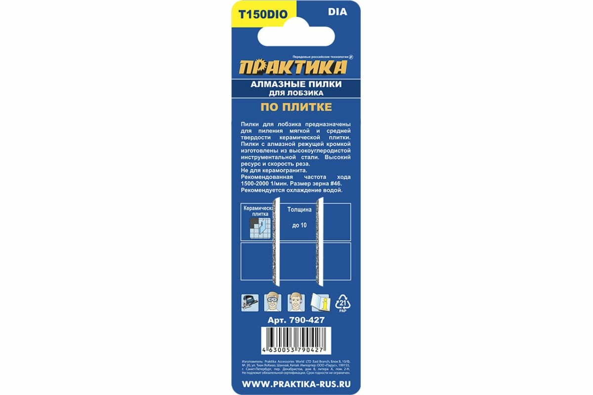 Купить Пилки для лобзика по плитке ПРАКТИКА тип T150DIO 76 х 50 мм, криволинейный рез, алмазные