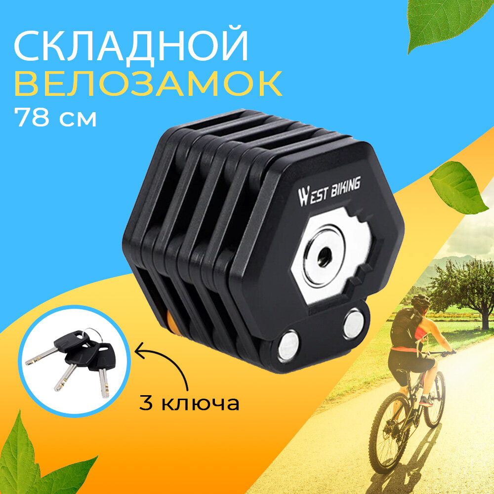 Замок для велосипеда складной с ключом противоугонный 78см West Biking черный интересное: