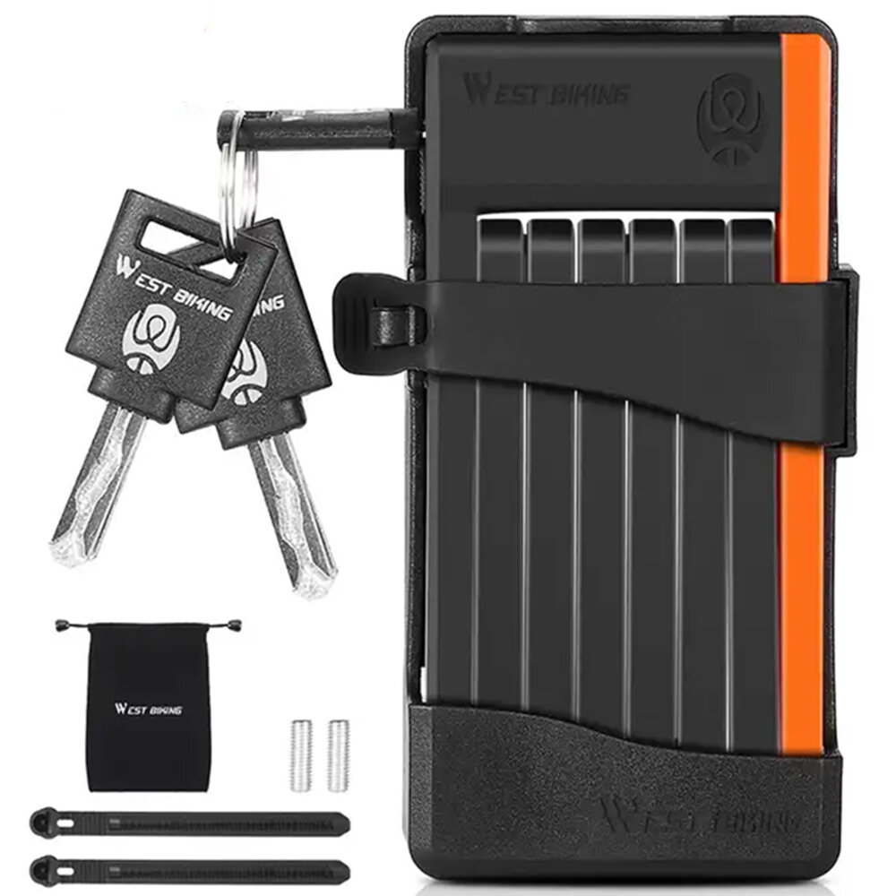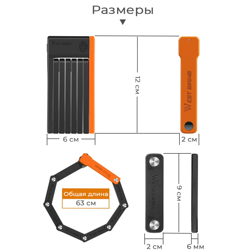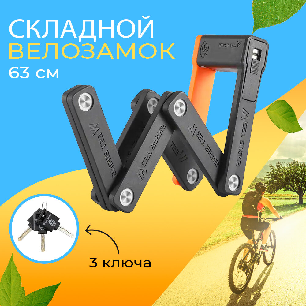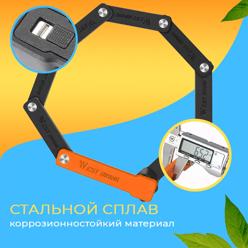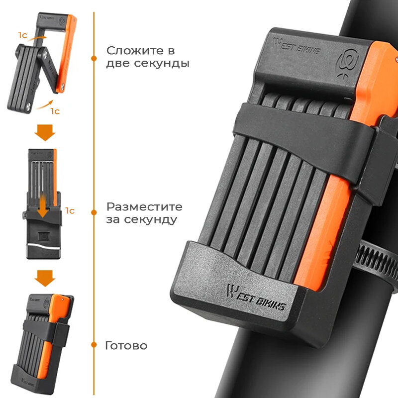 Замок для велосипеда складной с ключом противоугонный 63см West Biking черный/оранжевый интересное: