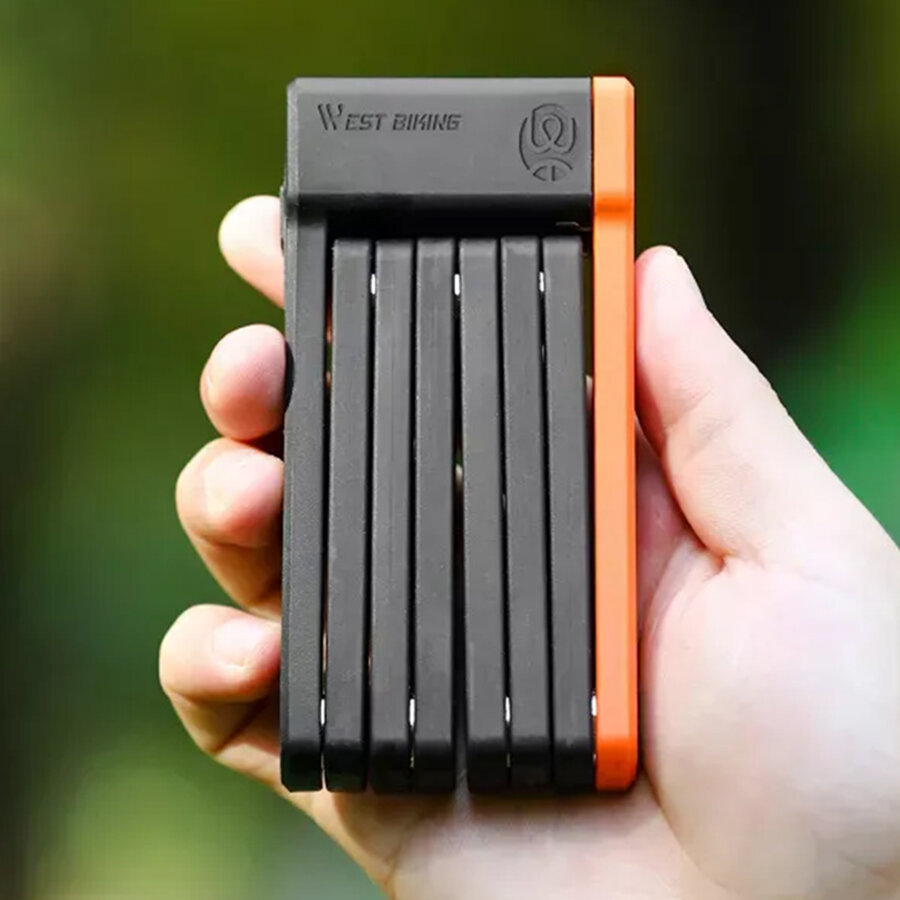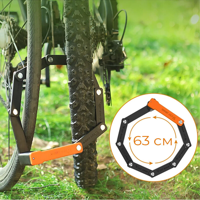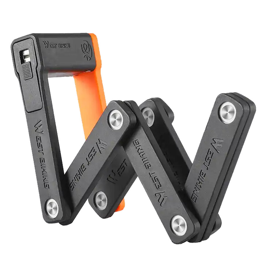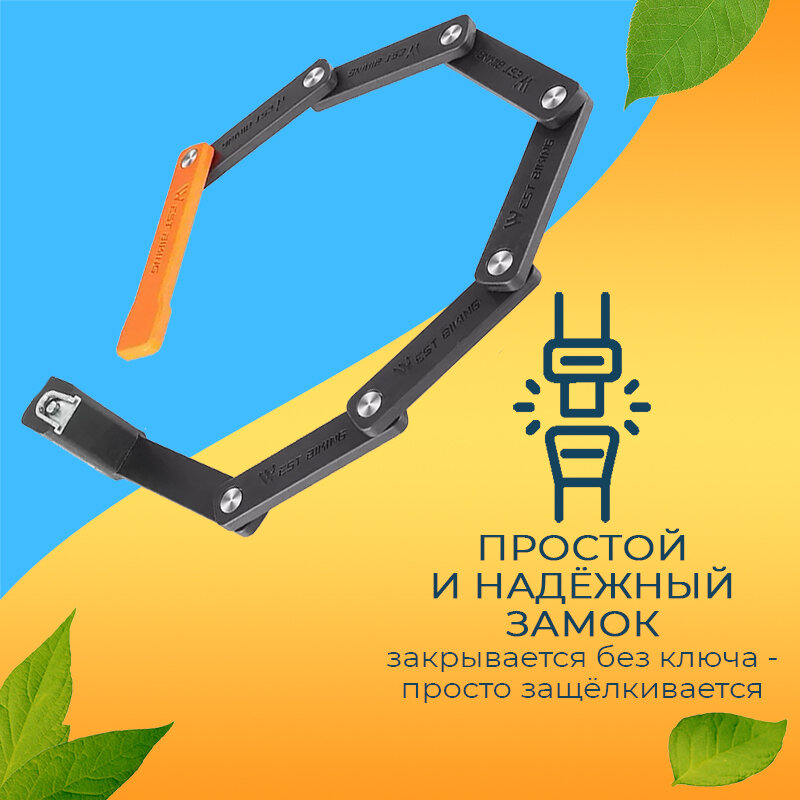 Замок для велосипеда складной с ключом противоугонный 63см West Biking черный/оранжевый интересное: