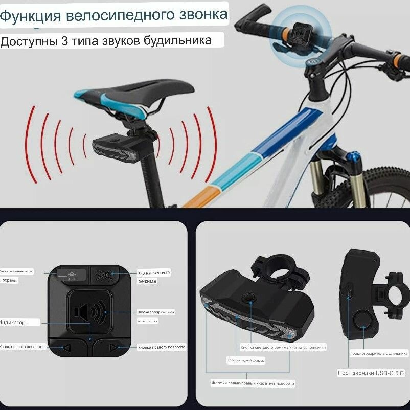 Купить Сигнализация ,стоп сиигнал 3в1 для велосипеда